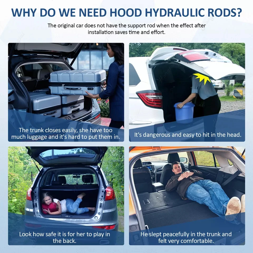 1, Installing The Car Trunk Hydraulic Rod Generally Requires Two People To Cooperate To Complete.First Open The Tailgate Of The Car, One Of Them Supports The Tailgate Of The Car With Both Hands, And Keeps Sticking To The End Of The Hydraulic Rod Installation.