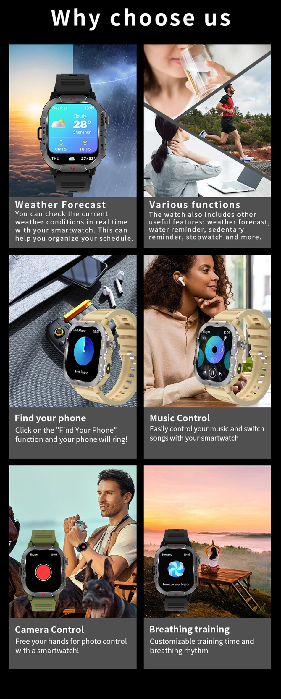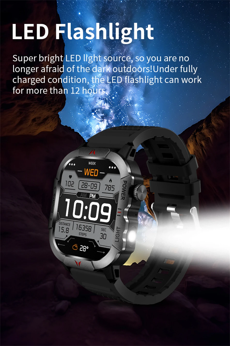 LIGE New Watches Military Smart Watch Men IP68 Outdoor Sports Fitness Tracker Health Monitor 2.01” HD Smartwatch For Android ios