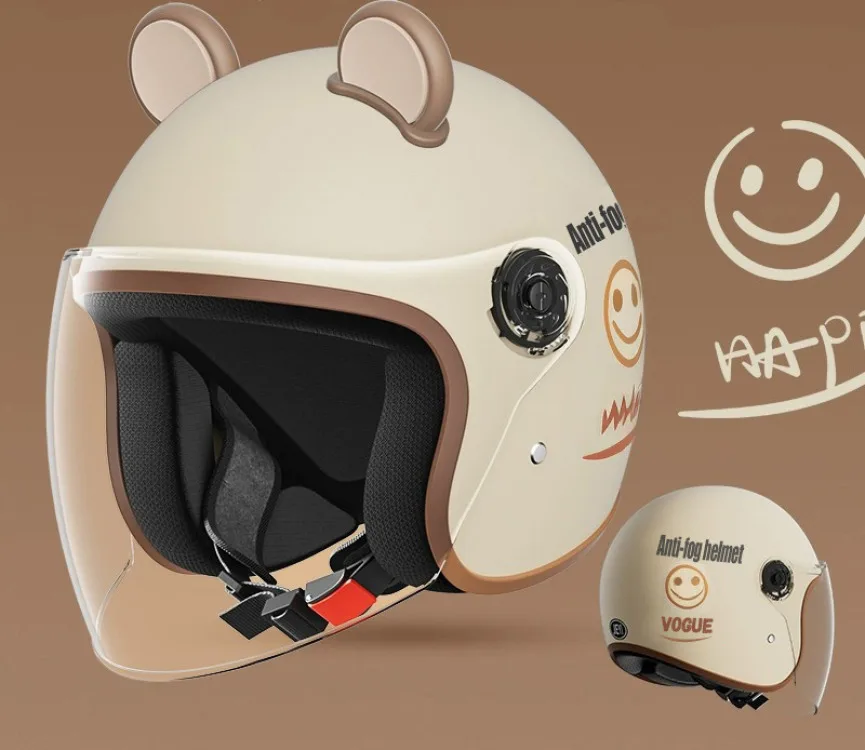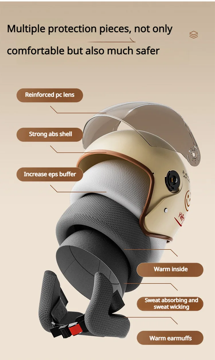 Light and warm safety helmet half helmet Antifog upgrade Absorb perspiration Beige Strong warmth Winter Warm Helmet