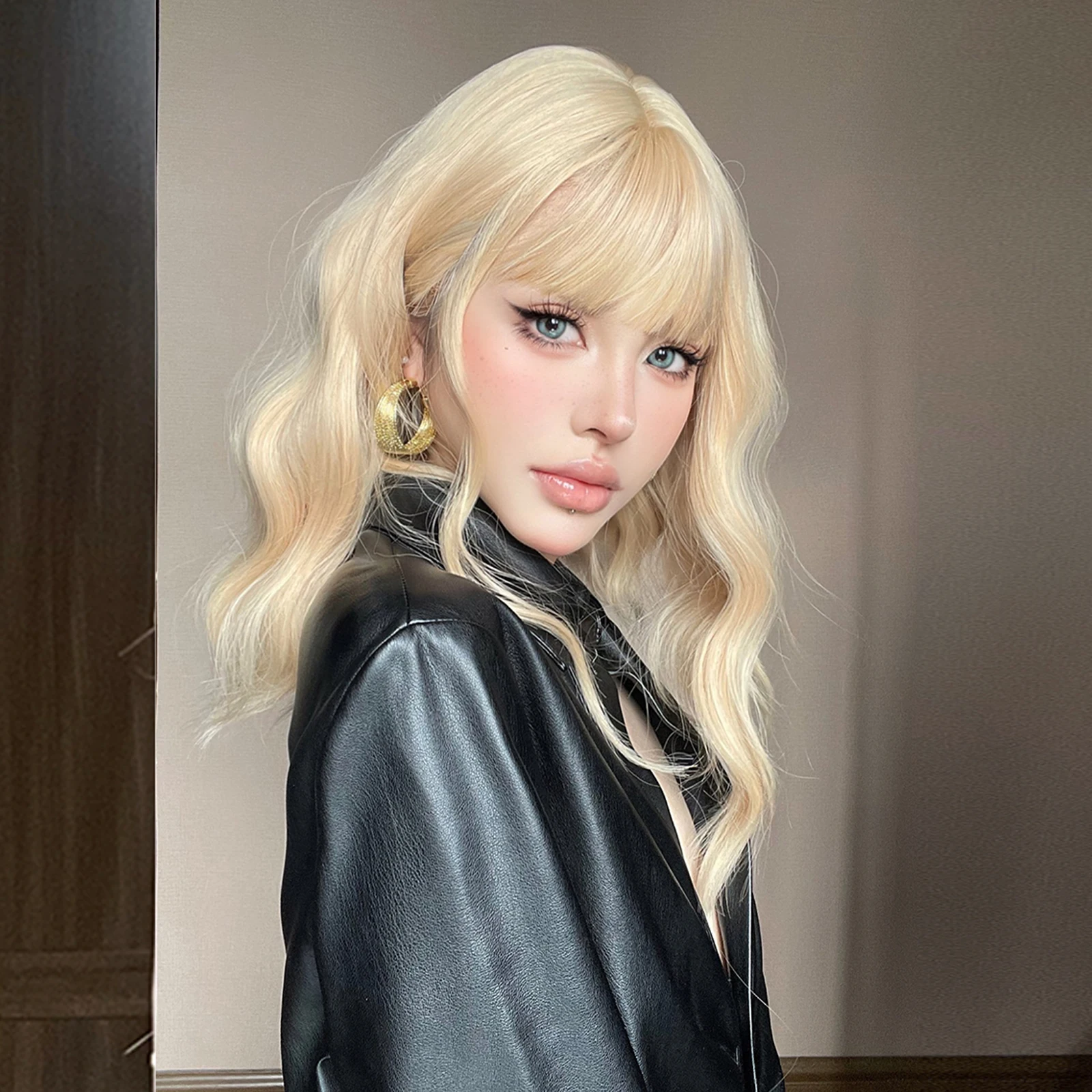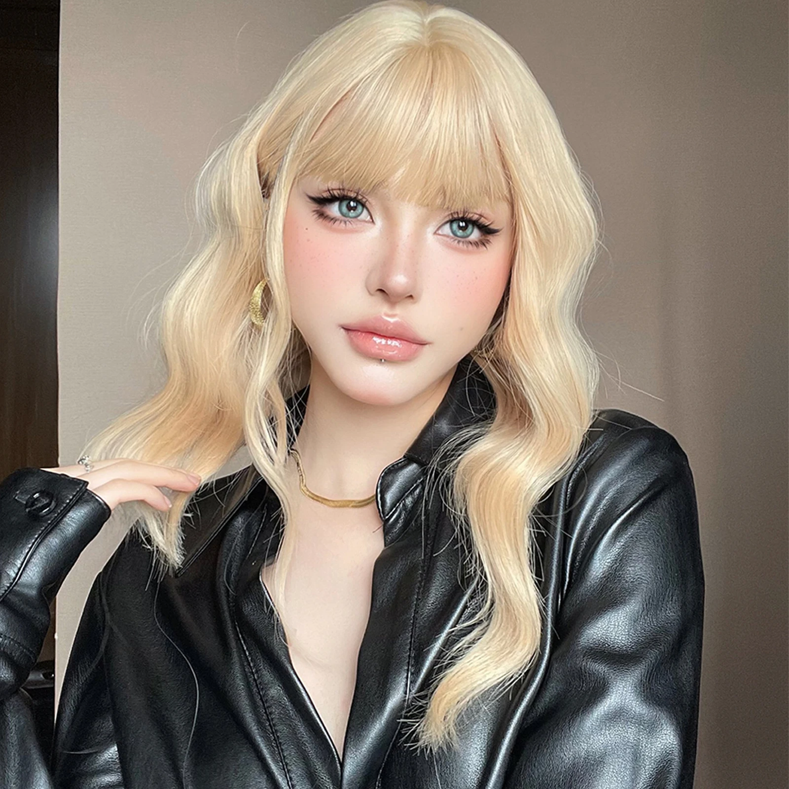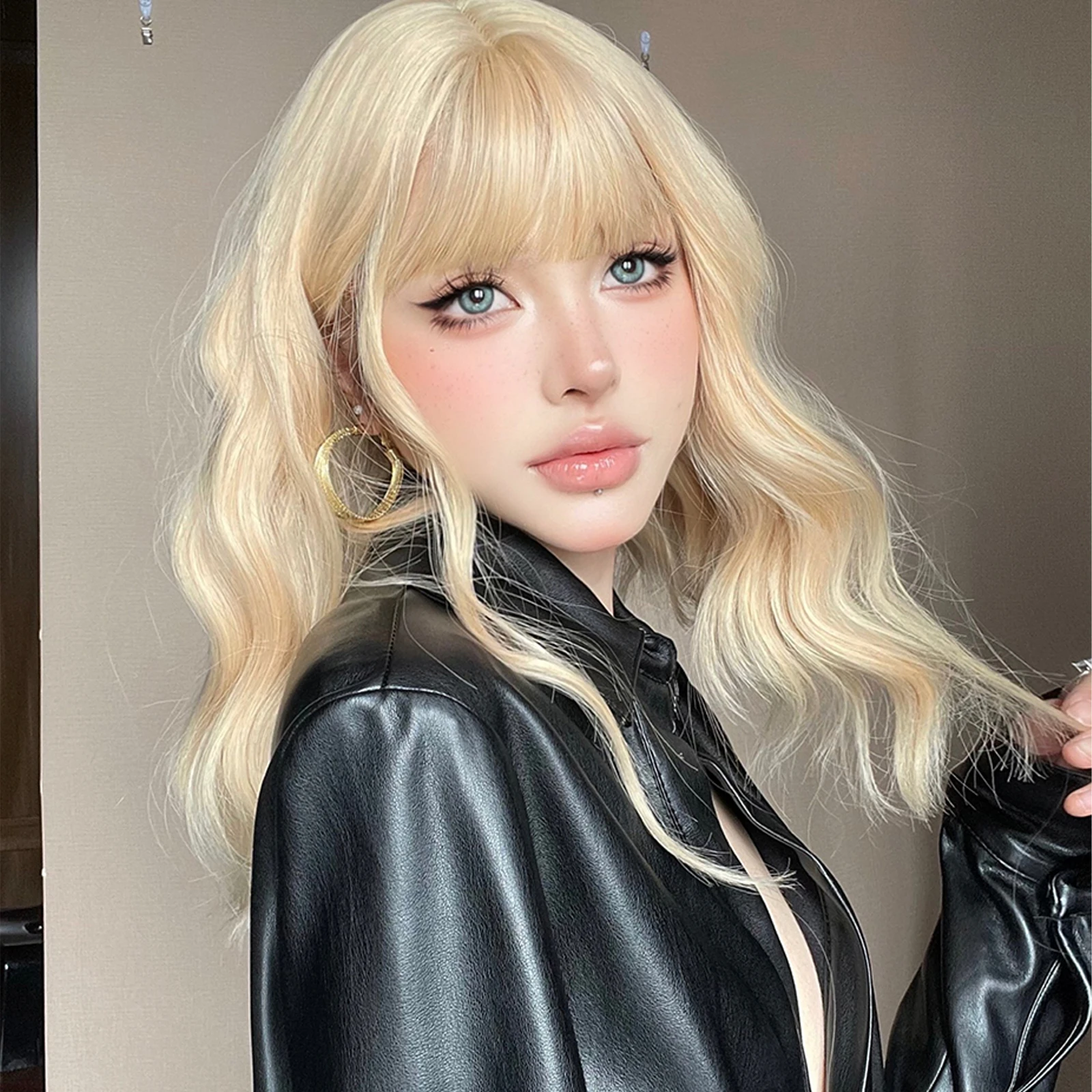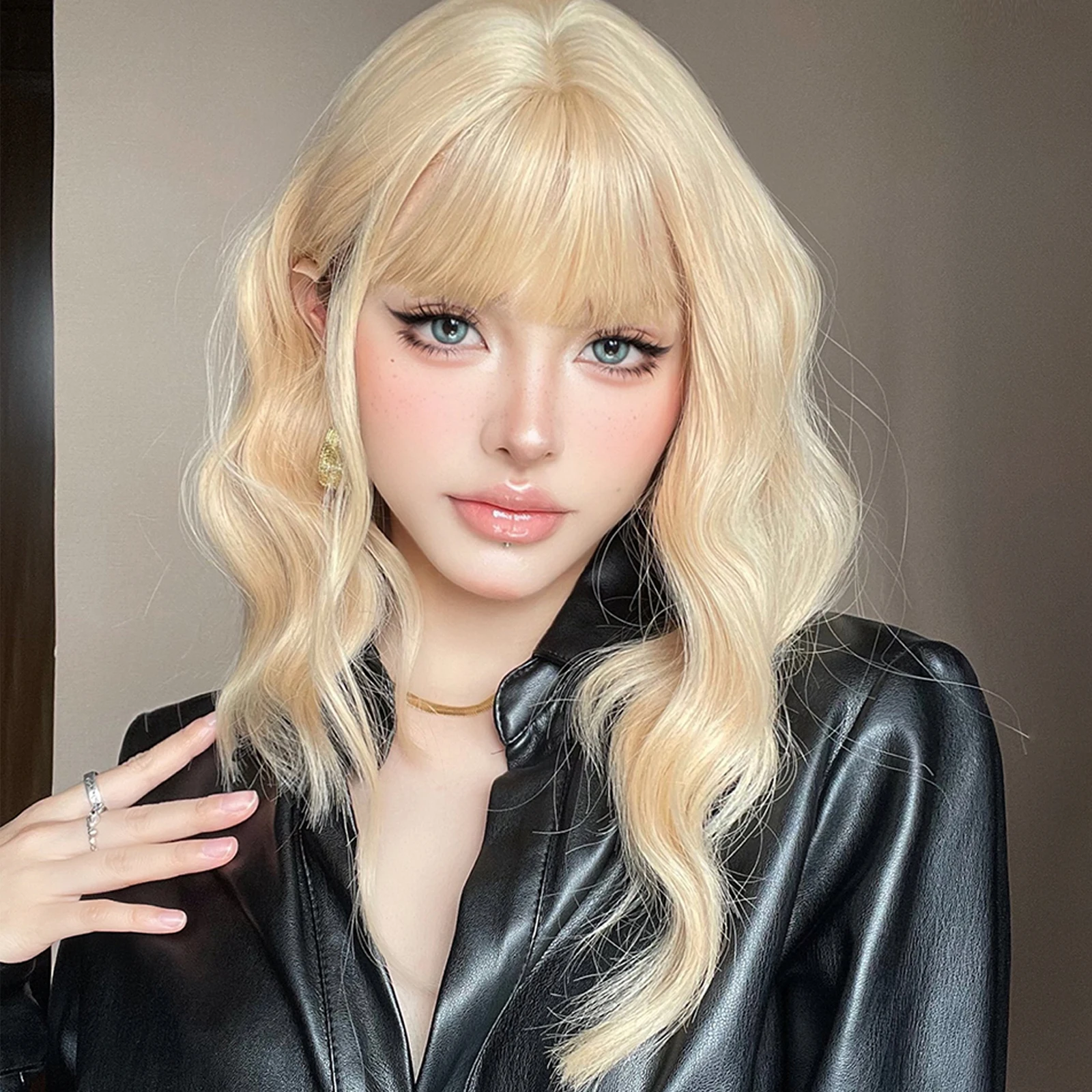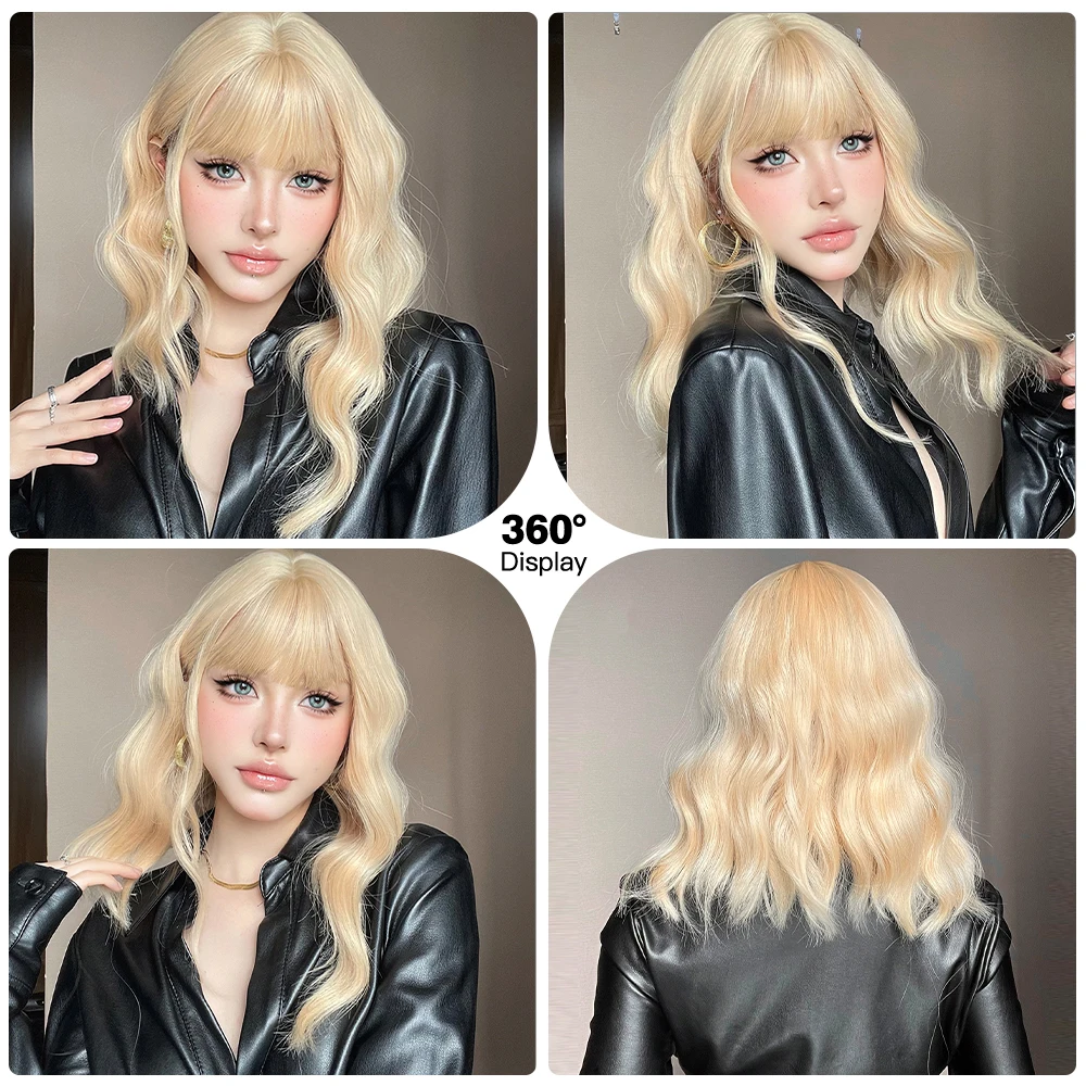 Light Blonde Bob Wave Synthetic Wig Short Ginger Yellow Hair Wigs with Bangs for Women Natural Lolita Daily Fake Hair Party Wig