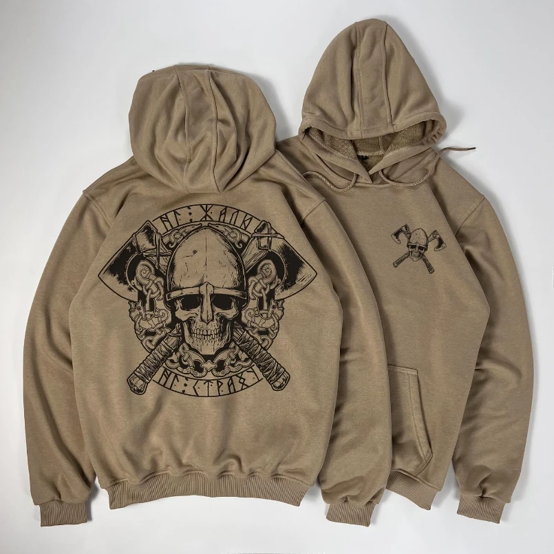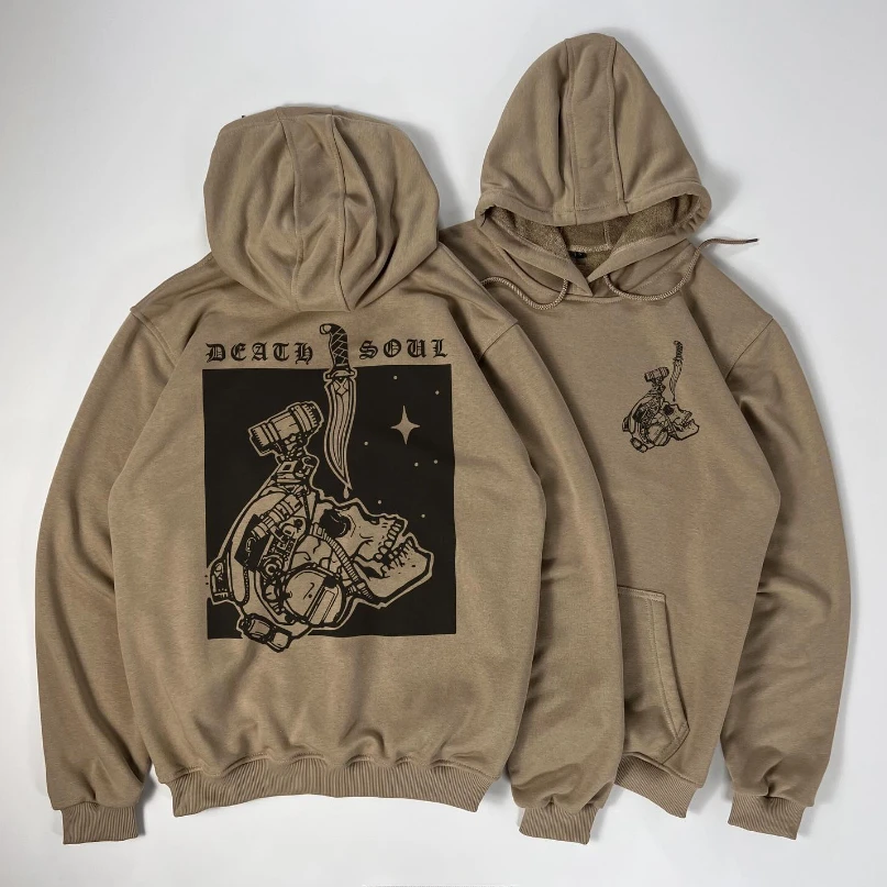 Light Brown Pullover Hoodie Men Women Skull Dark Series Pattern Printing Sweatshirt Fall Winter Ins New Loose Couple Casual Tops