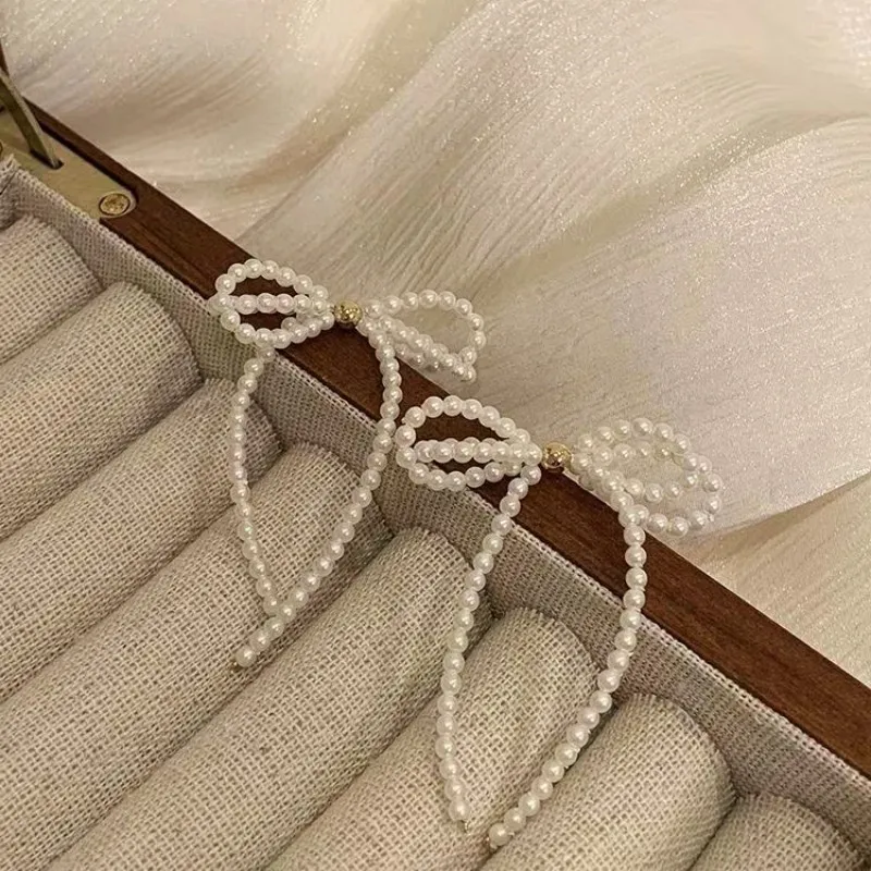Light Luxury Bowknot Imitation Pearl Earrings Long Tassel Bow Drop Dangle Earrings Women Fashion Elegant Wedding Jewelry Gifts