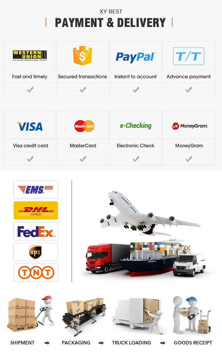 Accepted Payment Type: T/T,L/C,MoneyGram,Credit Card,PayPal,Western Union,Cash;