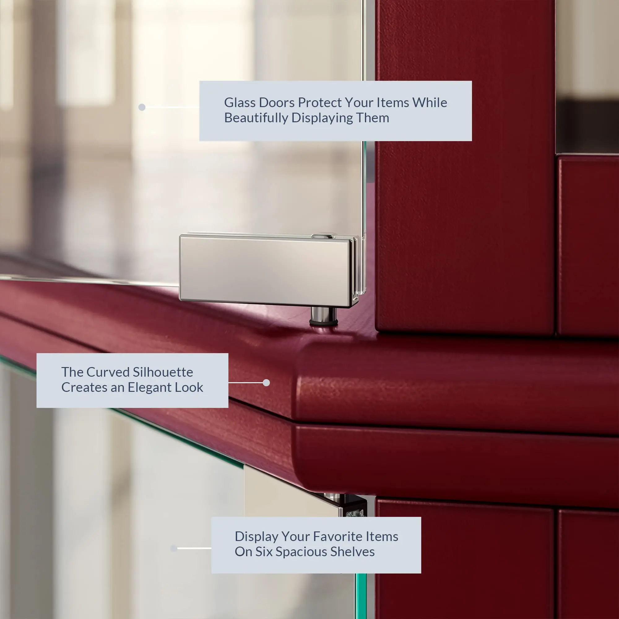 - [Natural Classic Design] – Available in Cherry, Walnut, Oak, Black, and White, this wood cabinet with glass doors has a curved and smooth silhouette. Its eye-pleasing design is soft and relaxing, adding a gentle element to your interior design and the items being displayed inside it.