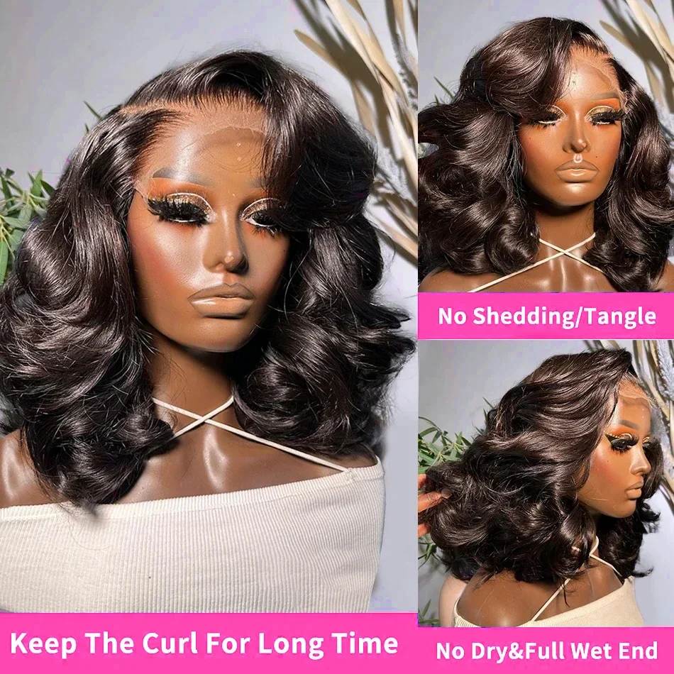 Linktowig 13×6 Body Wave HD Lace Frontal Bob Wig Brazilian Remy Short Water Wave 5×5 Glueless Closure Human Hair Wig For Women