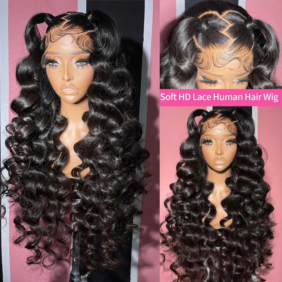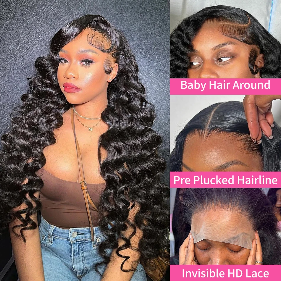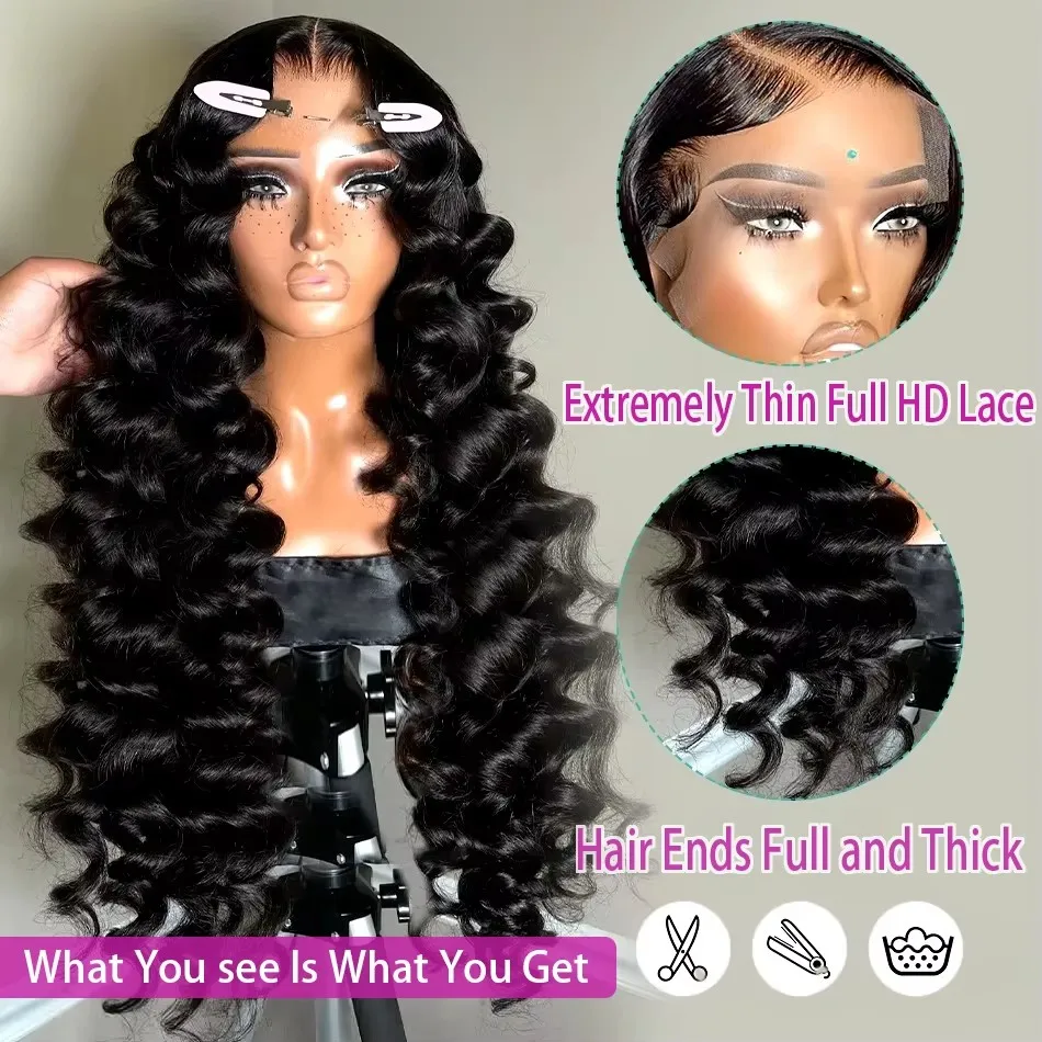 Linktowig 250% Loose Waves 13×6 HD Curly Lace Front Human Hair Wig 30 Inch Water Wave Wigs 13×4 Loose Wave Lace Wig For Women