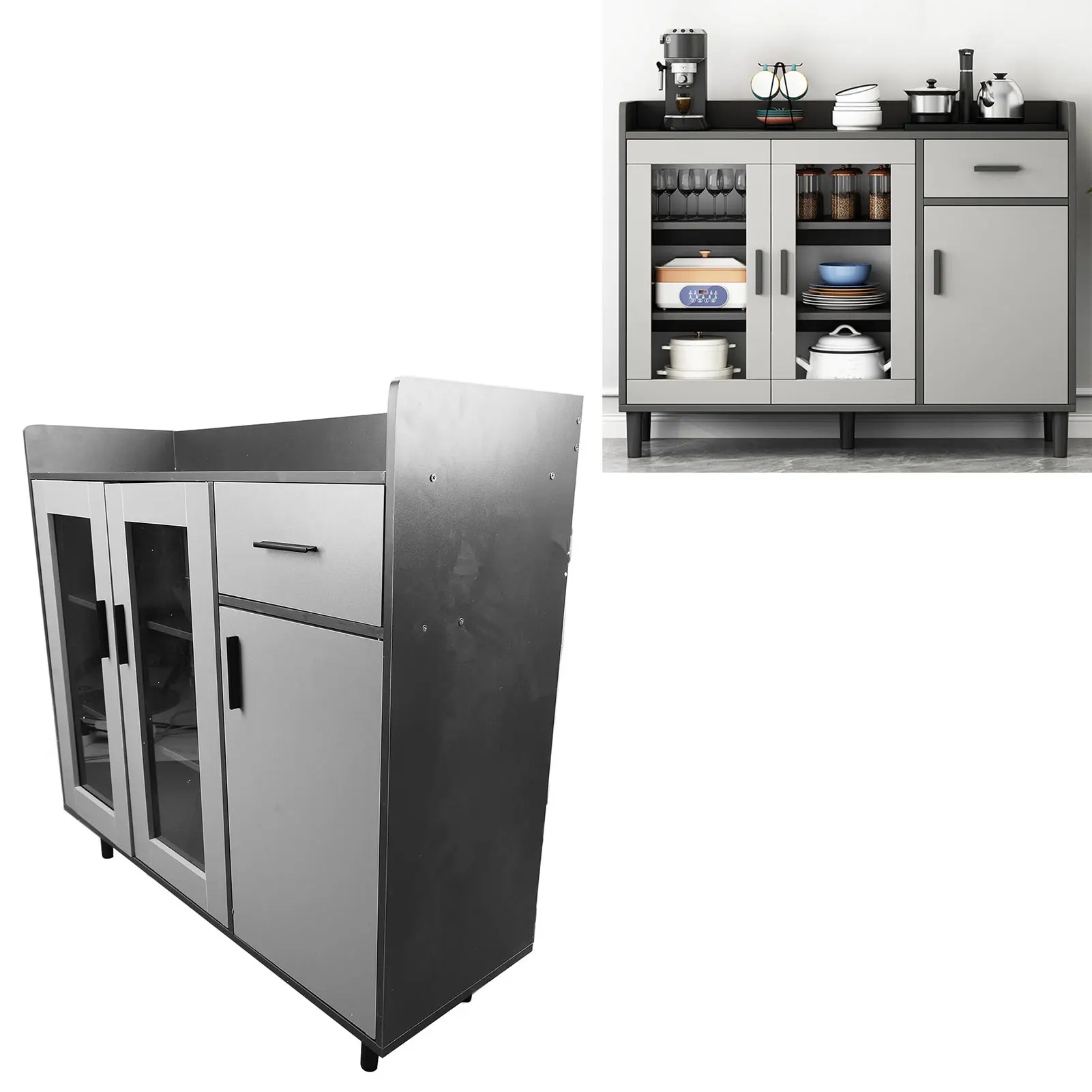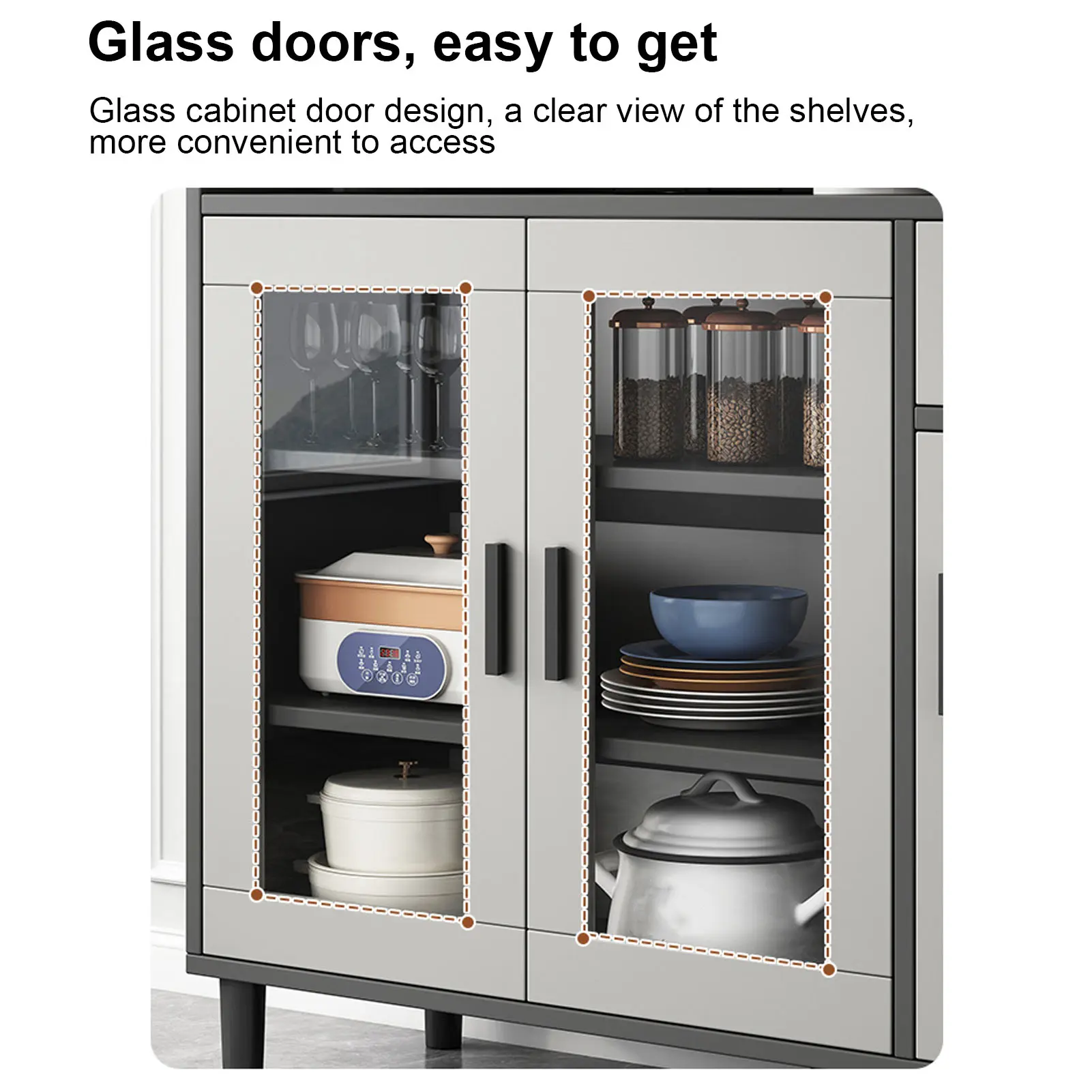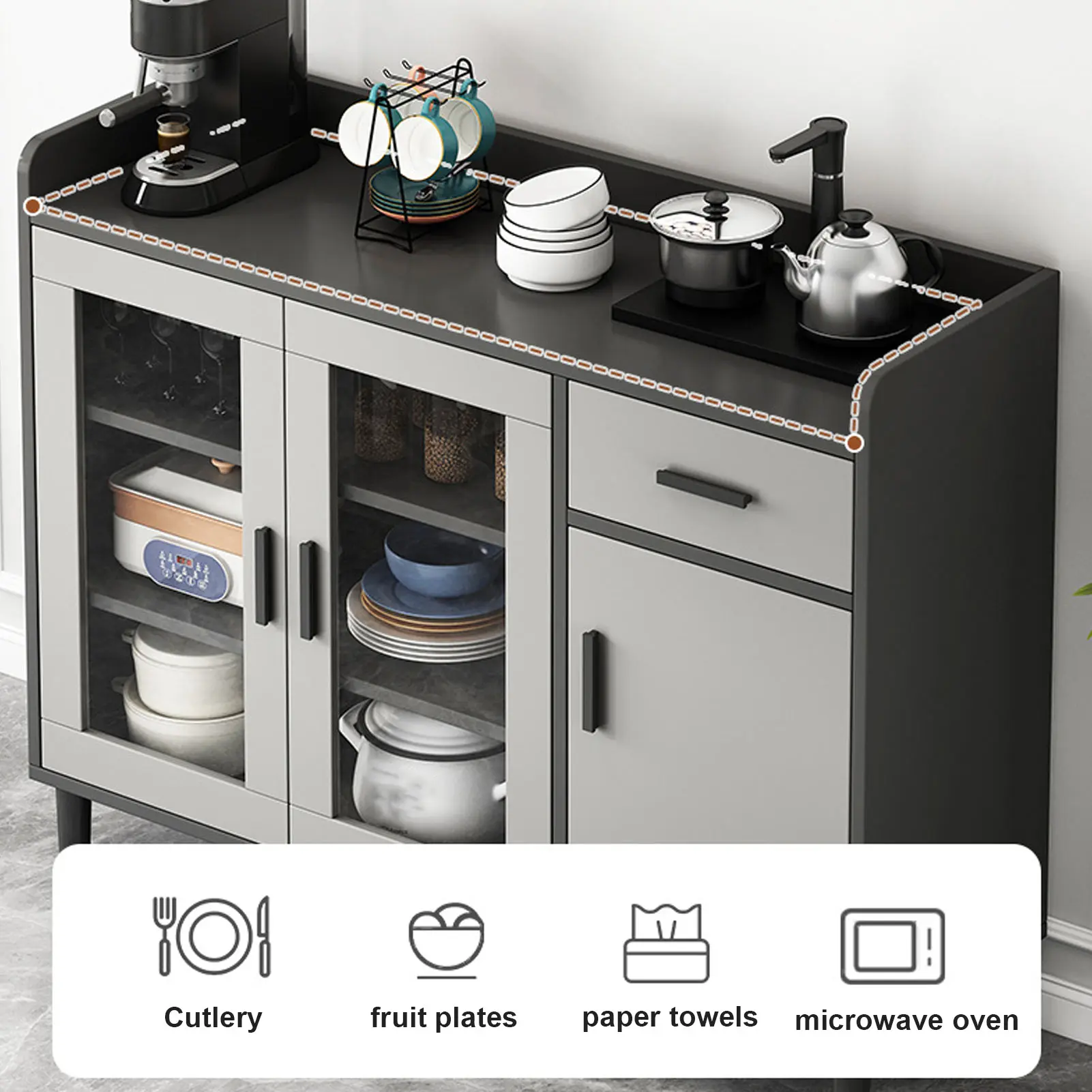 WIDELY APPLICABLE: Multifunctional kitchen storage sideboard, can be used to store dishes, cutlery and other kitchen items, neat and orderly, keeping everything organized and in order.
