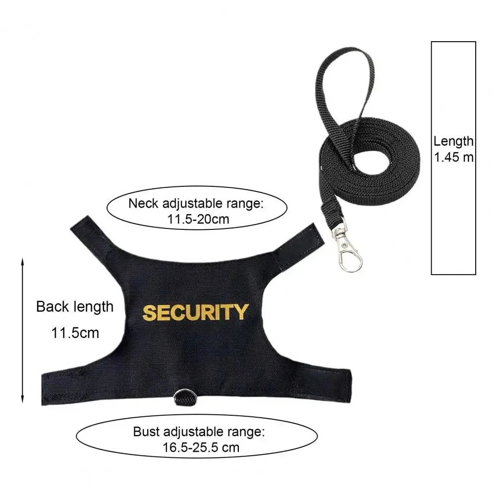 Secure Fit: Featuring adjustable hook and loop for the neck and chest, along with a long leash, this harness offers a customizable fit for various small pets. The “security” print adds an extra layer of safety.