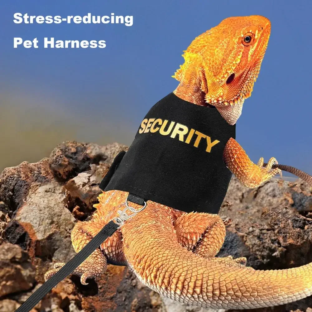 Lizard Leash Harness Breathable Soft Padding Reptile Bearded Dragon Vest Top with Hook And Loop Adjustable Easy Wear Small Animals Security Print Clothes