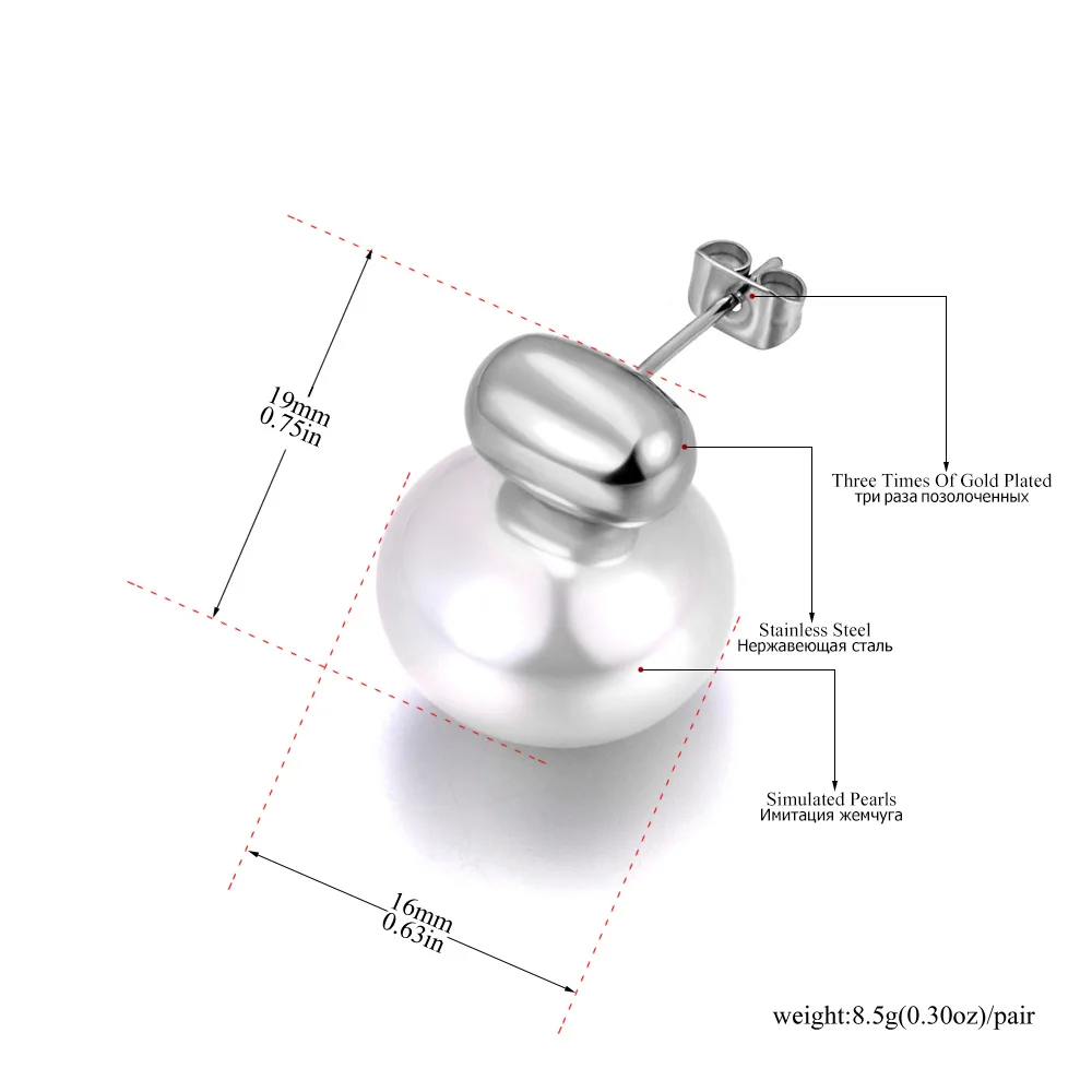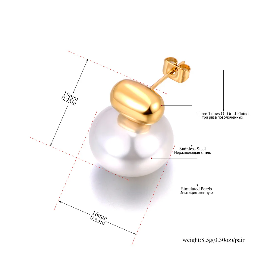 High Quality White Imitation Pearls Stainless Steel Korean Stud Earrings Charms Fashion Jewelry Bijoux Femme Gift