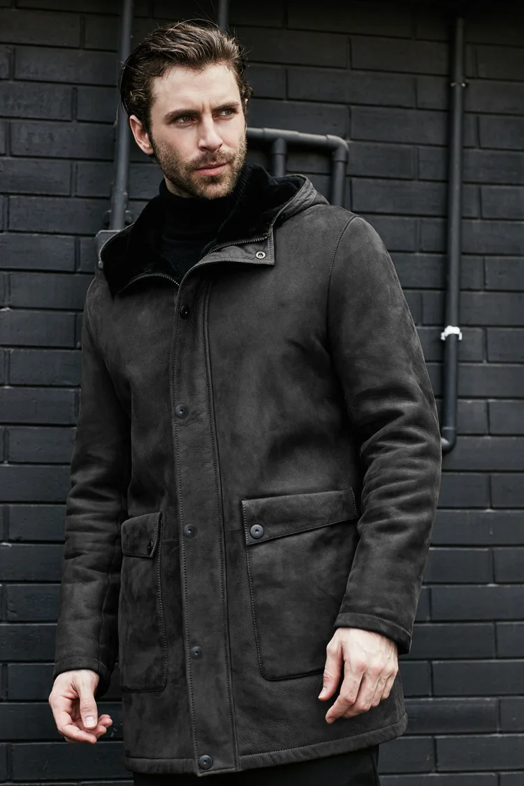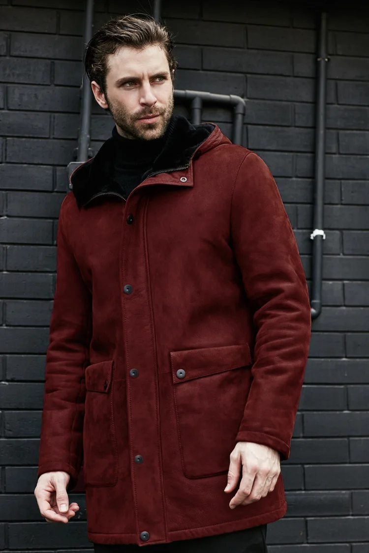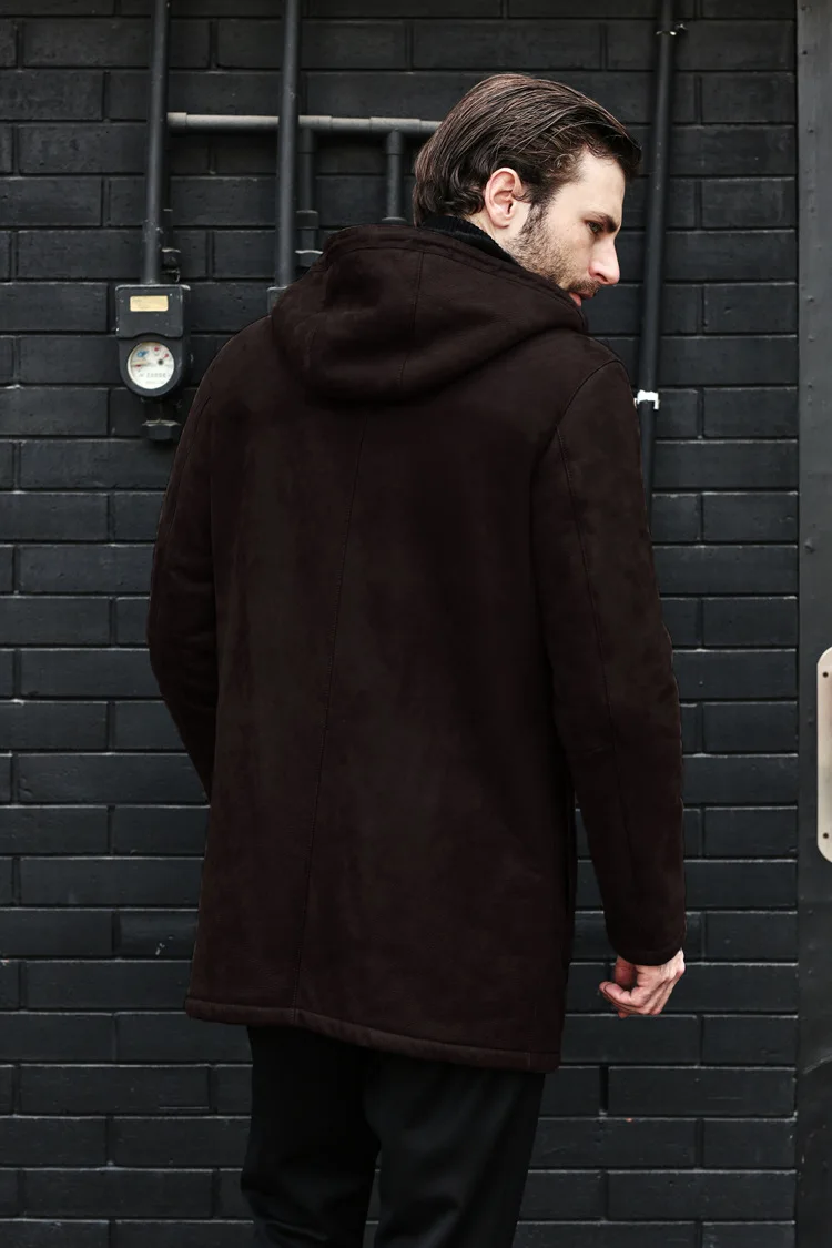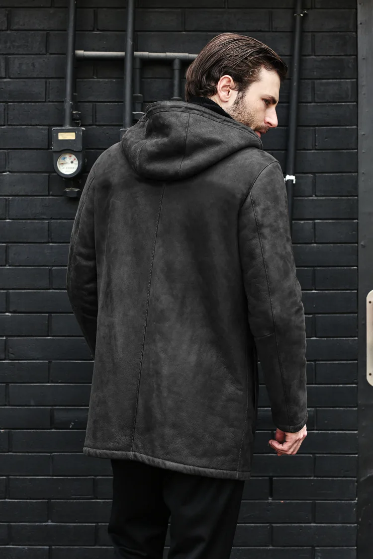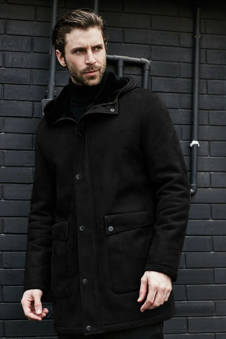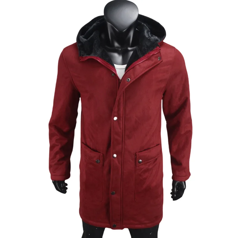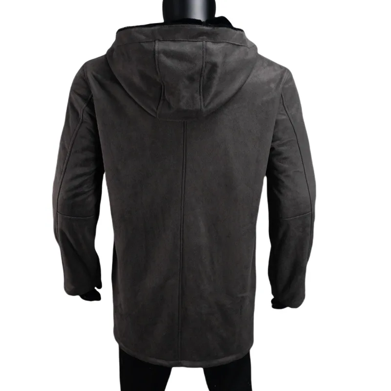 Long Jacket Fur Integrated Suede Jacket Multi-button Hooded Mens Coat