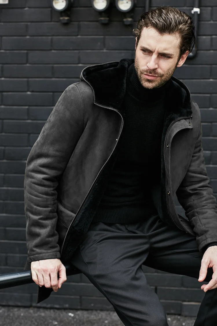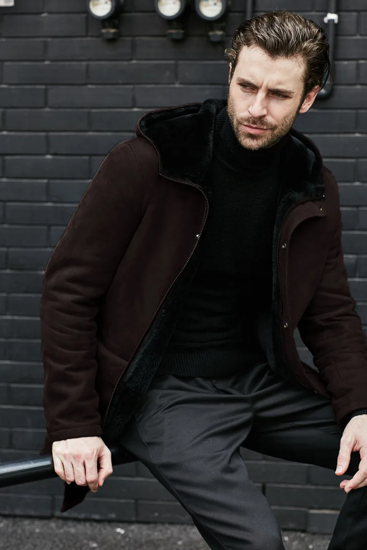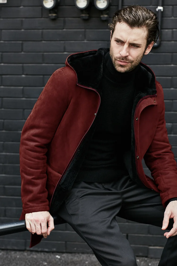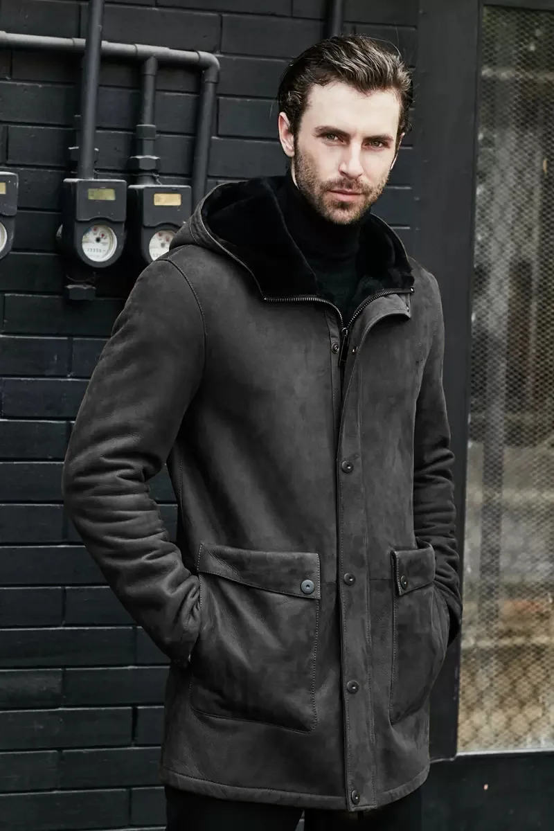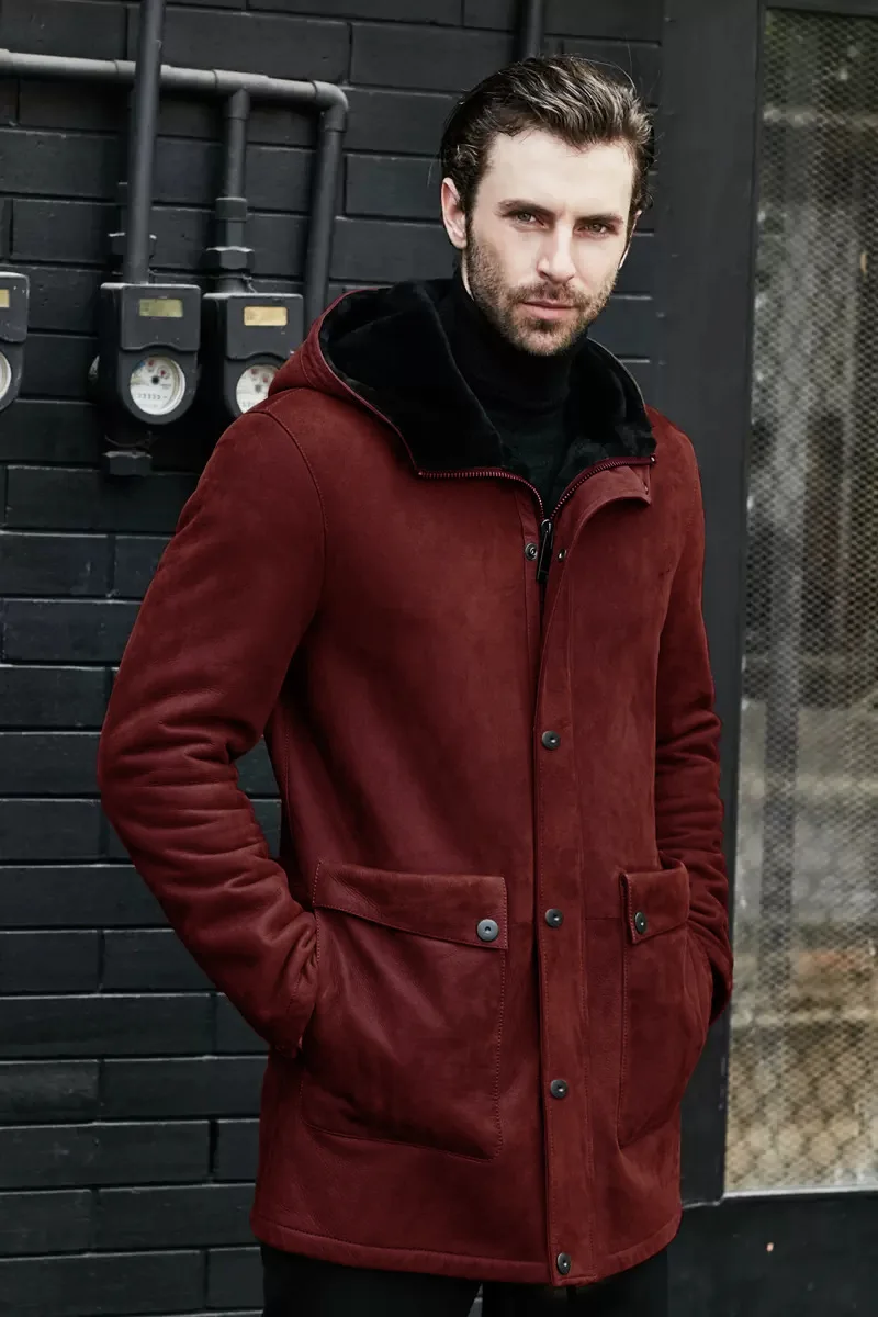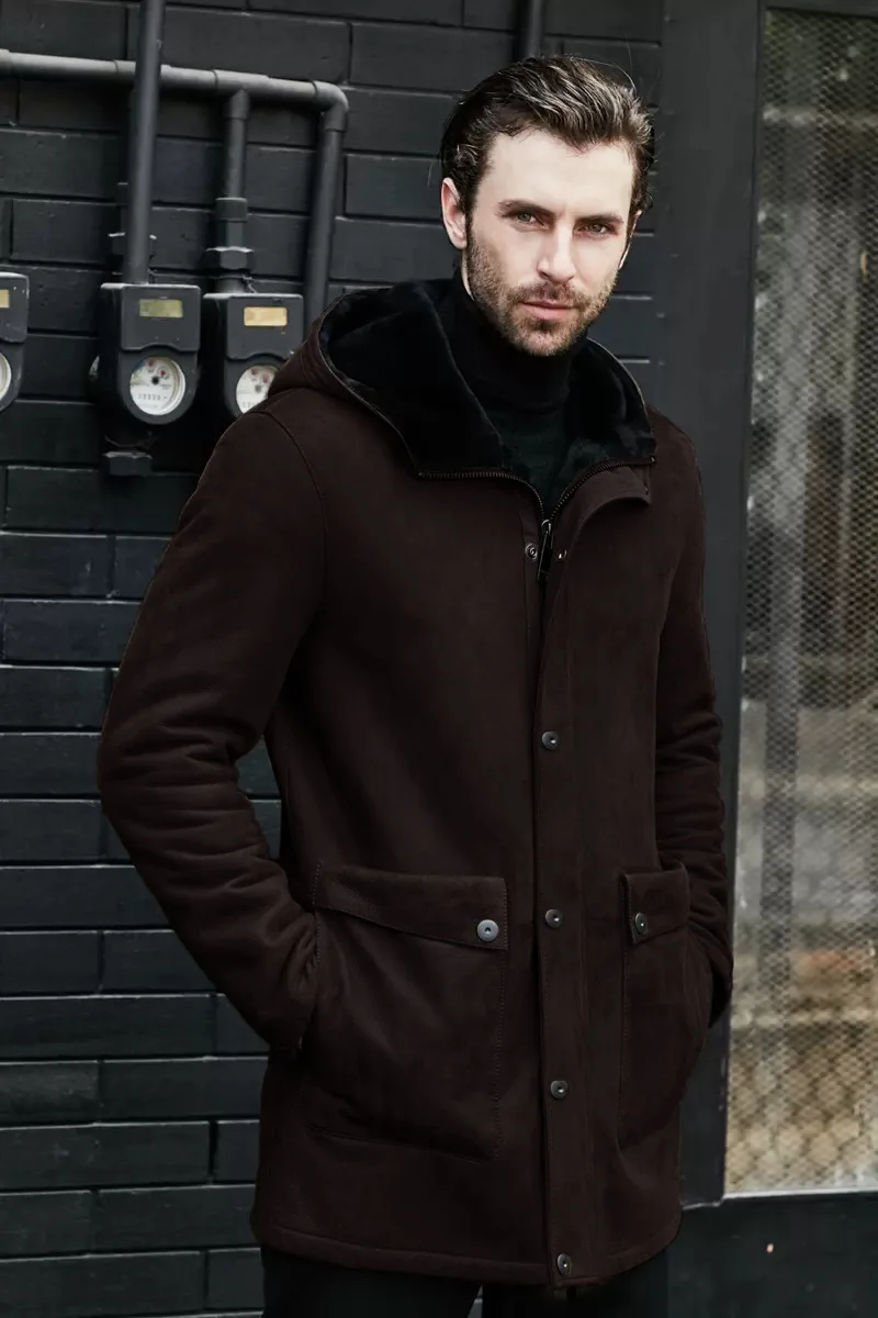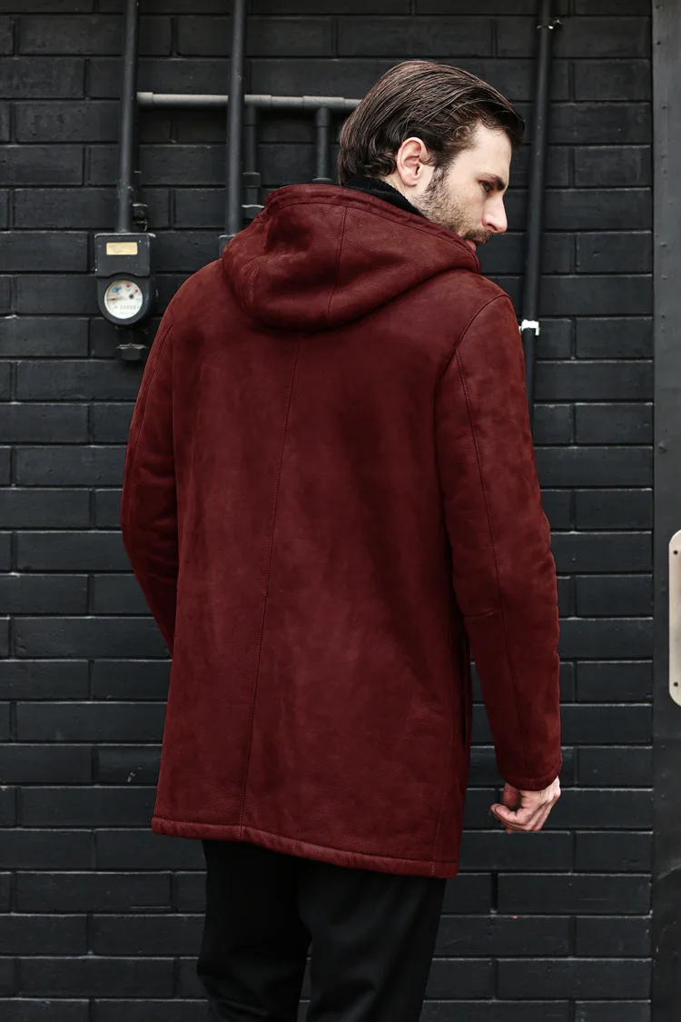 Long Jacket Fur Integrated Suede Jacket Multi-button Hooded Mens Coat