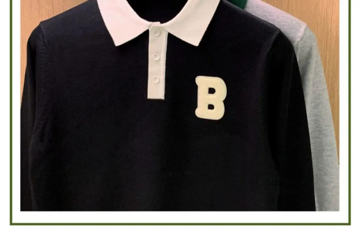 Long Sleeve Knitted Men Polo Shirts Turn-down Collar Tshirts Flocking Patchworked Slim Casual Tops Outwear
