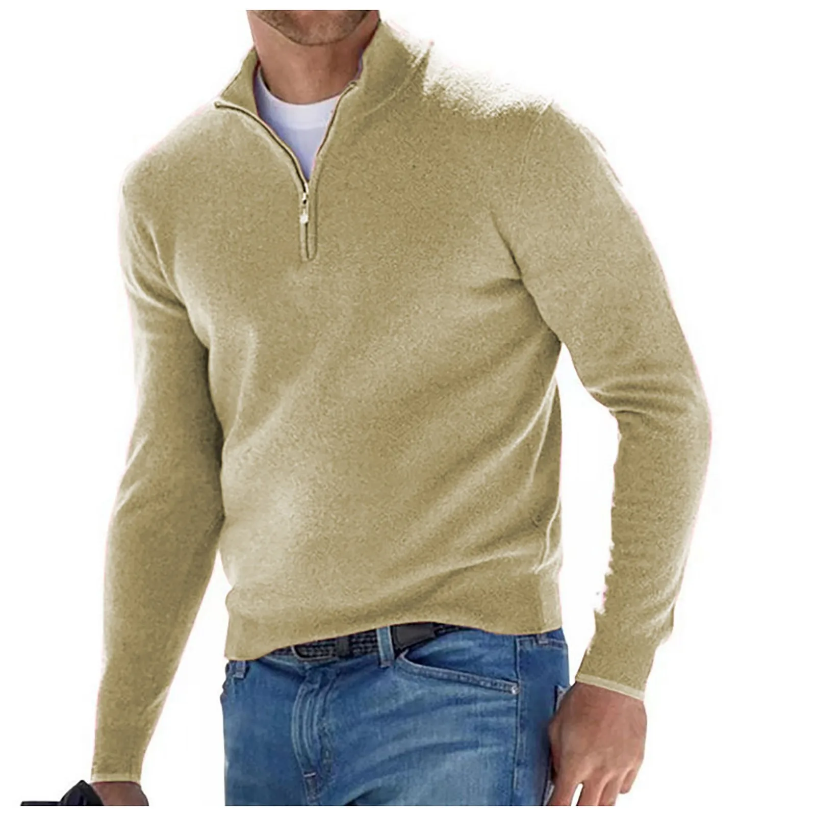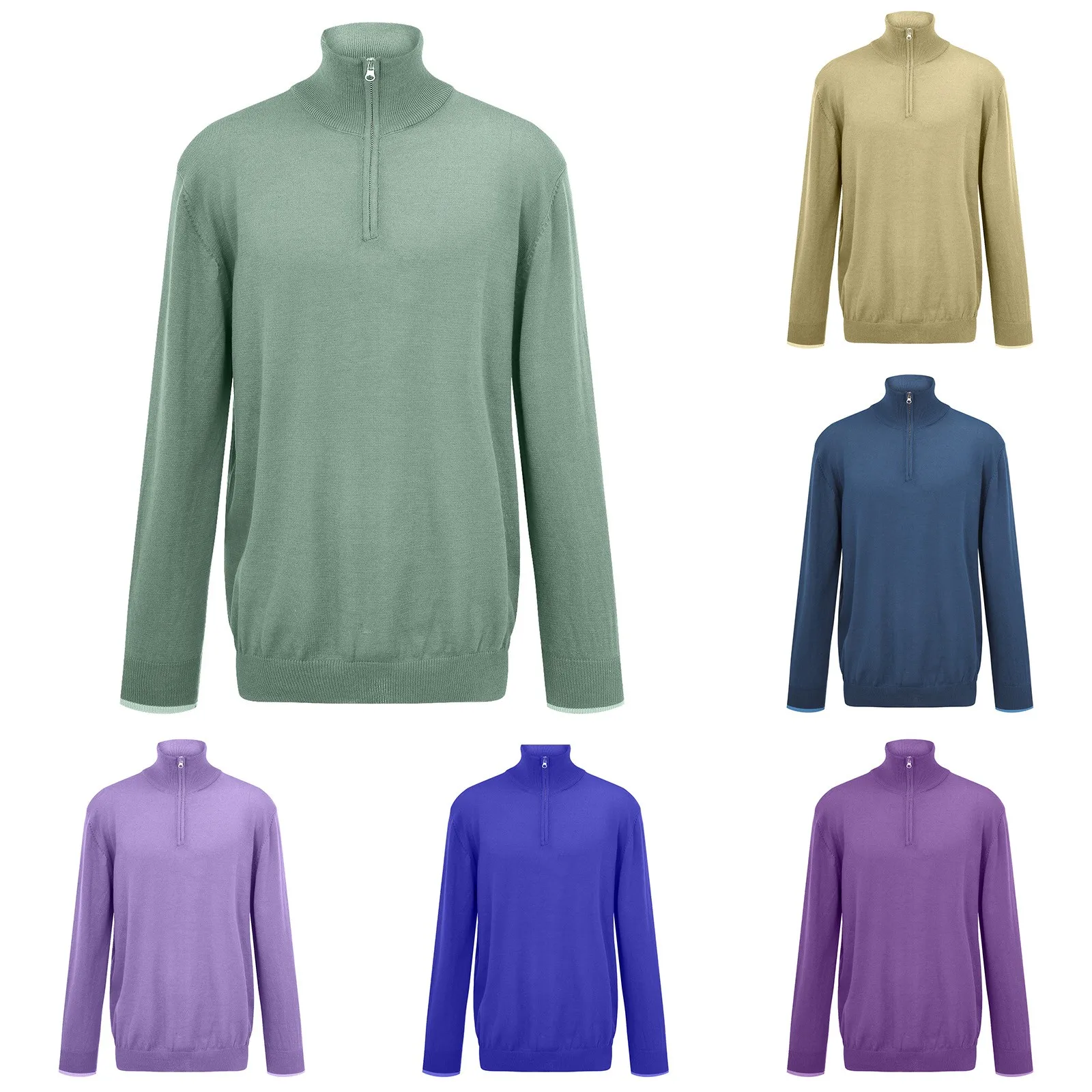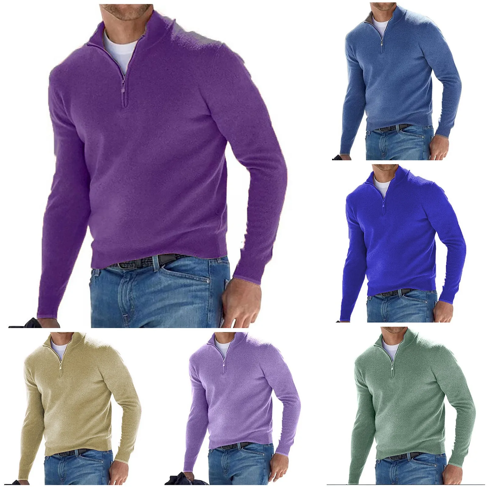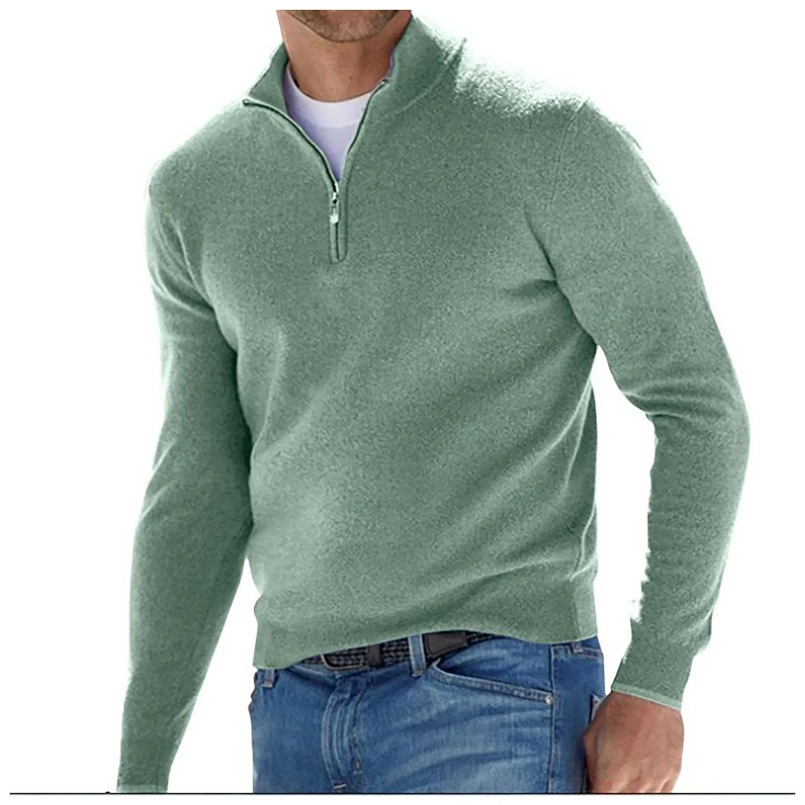 Long Sleeved V Neck Zip Up Men’s Casual Shirt Men’s Long Sleeved Zipper Undershirt Temperament Solid Color Jacket