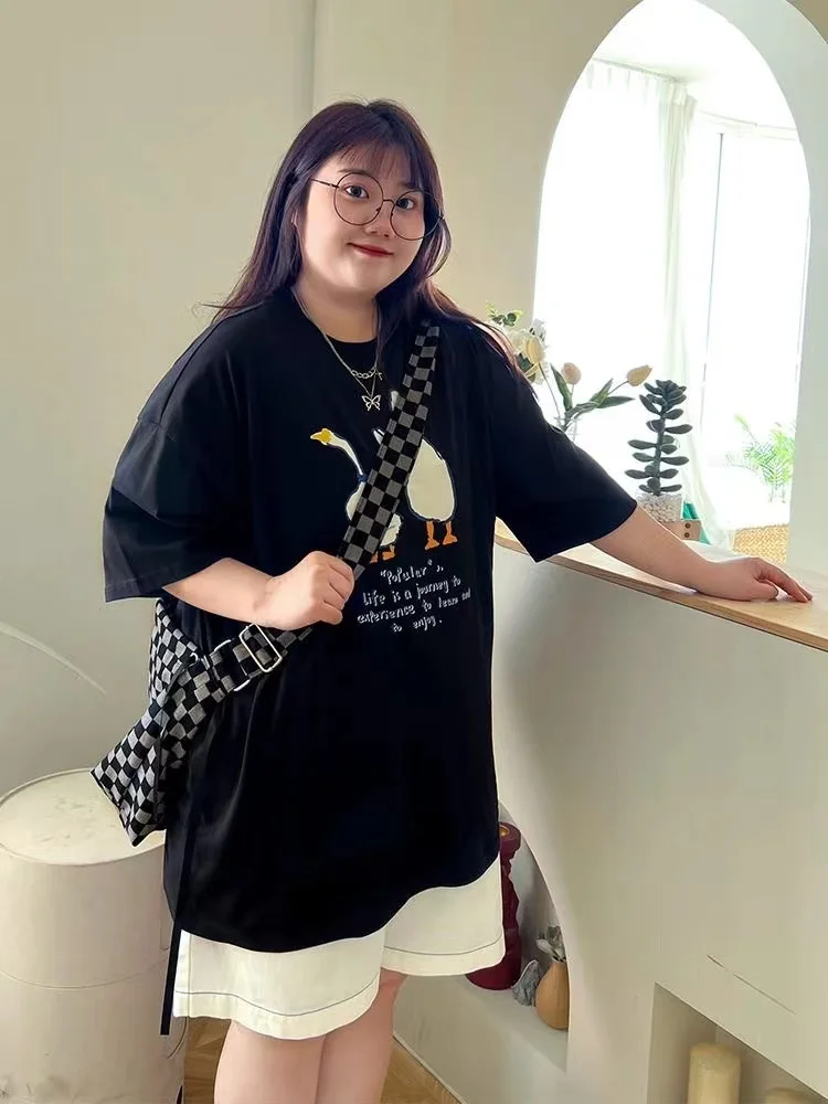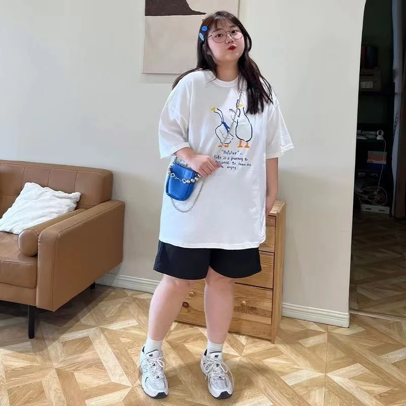 Loose Elastic Comfort T-Shirt for Women, Plus Size, Big, Big, Add Size, Tops, Casual, Oversize, Female Shorts, Summer Clothing