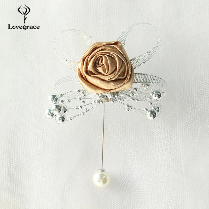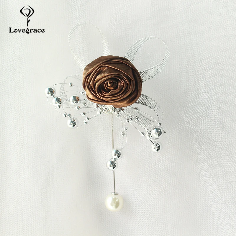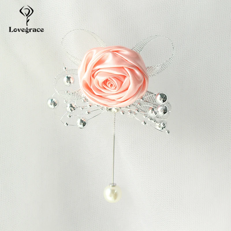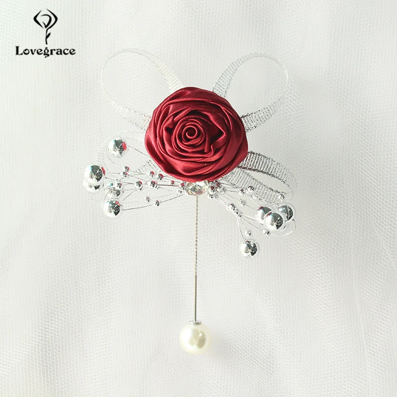 Lovegrace Artificial Rose Silk Bridesmaid Brooch Wedding Corsages and Boutonnieres Groomsman Buttonhole Mariage Accessories