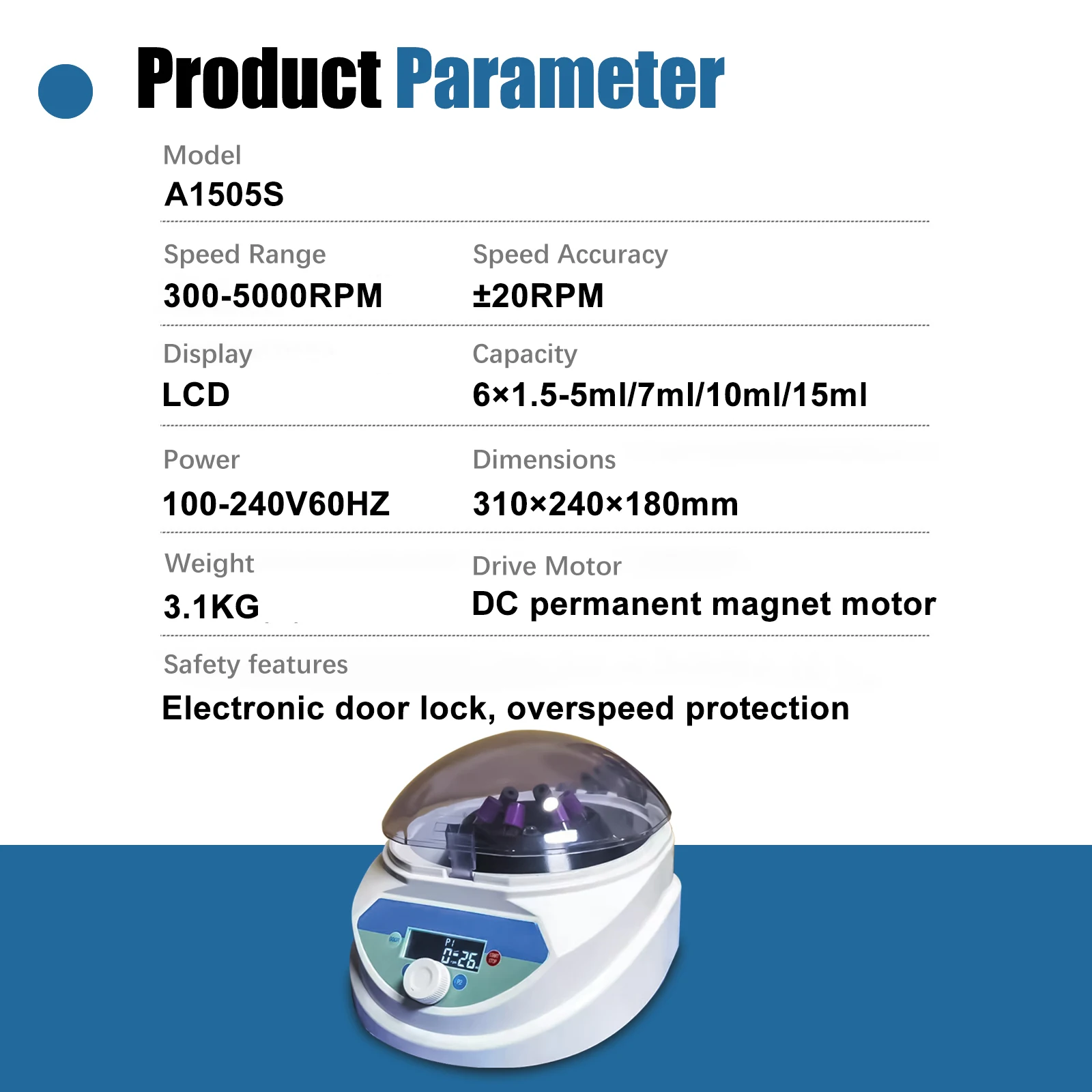 3. Rotor capacity: 6×15ml/10ml/7ml/1.5-5ml;