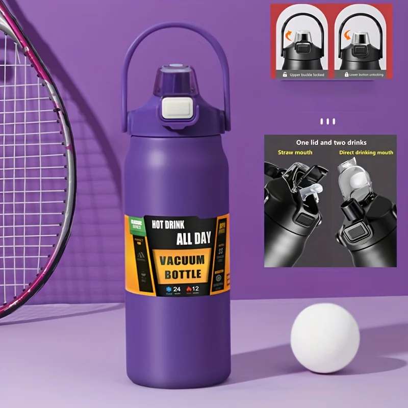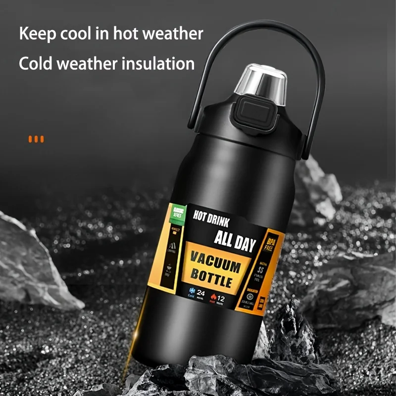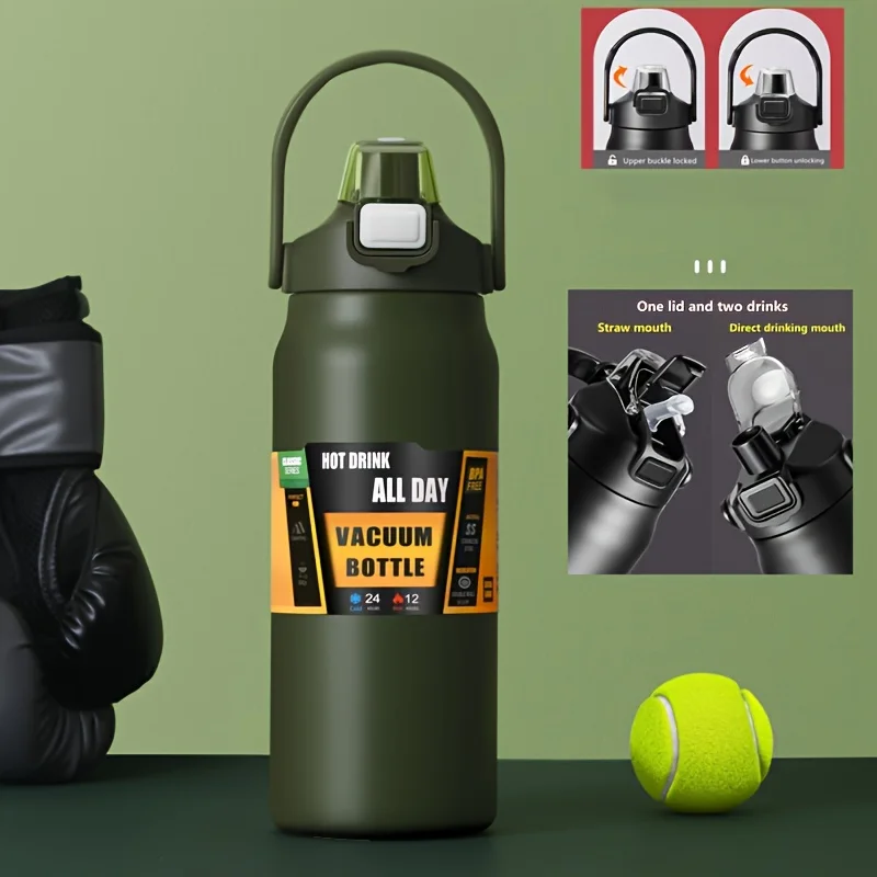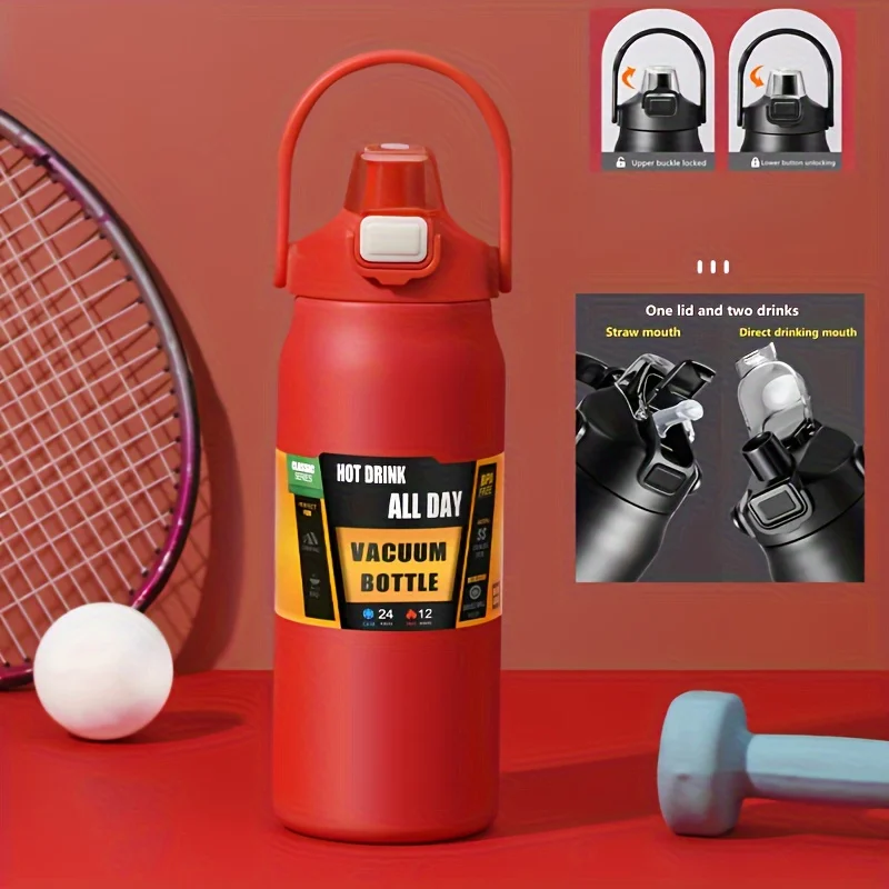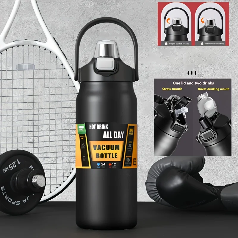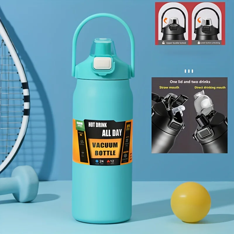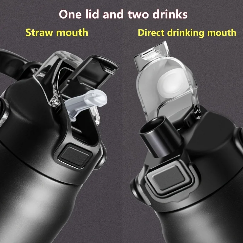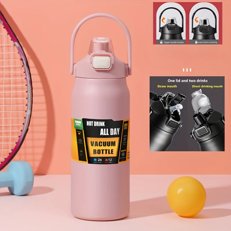 LUSQI 1PC Large Capacity Water Bottle 304 Stainless Steel Thermos 1.2L/1.5L Straw&Direct Drinking For Outdoor Activities