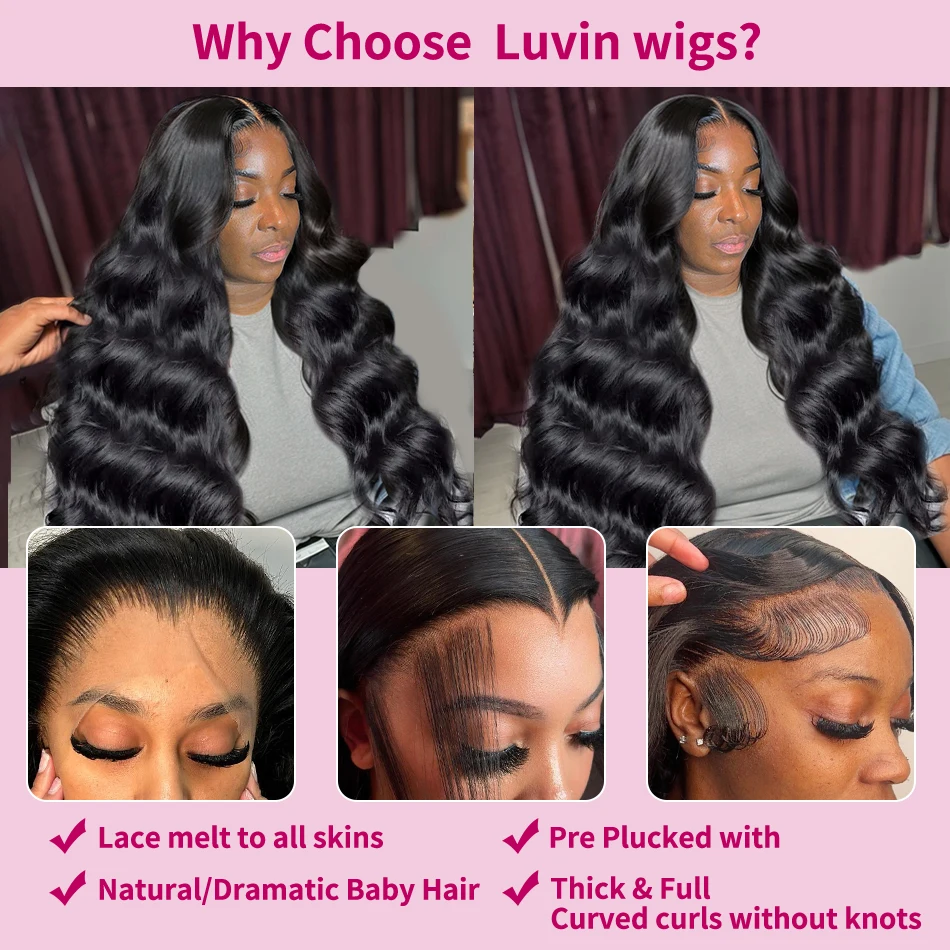 Luvin Brazilian 30 Inch Transparent 13×4 13×6 HD Lace Frontal Wig Pre Plucked Body Wave Human Hair Wigs For Women