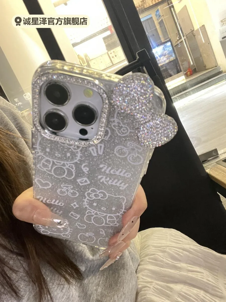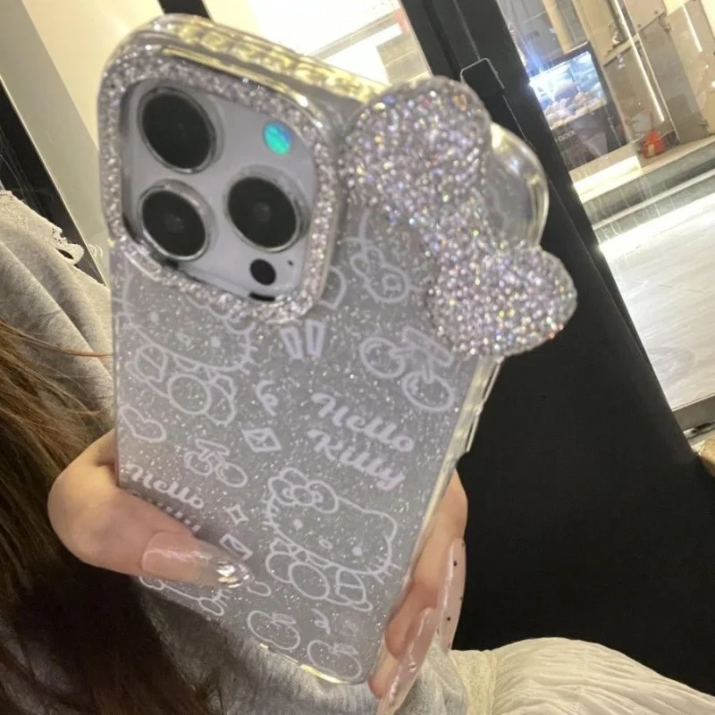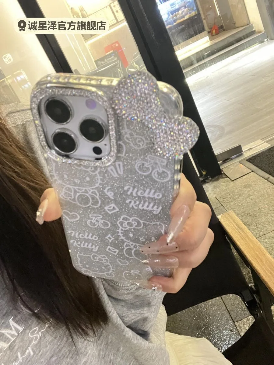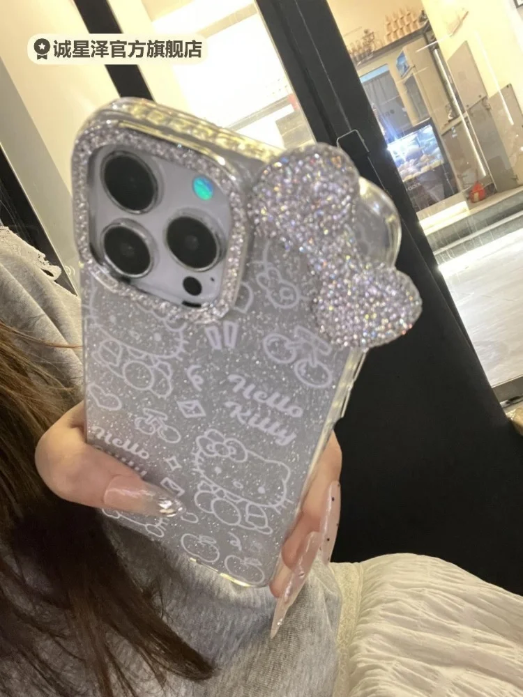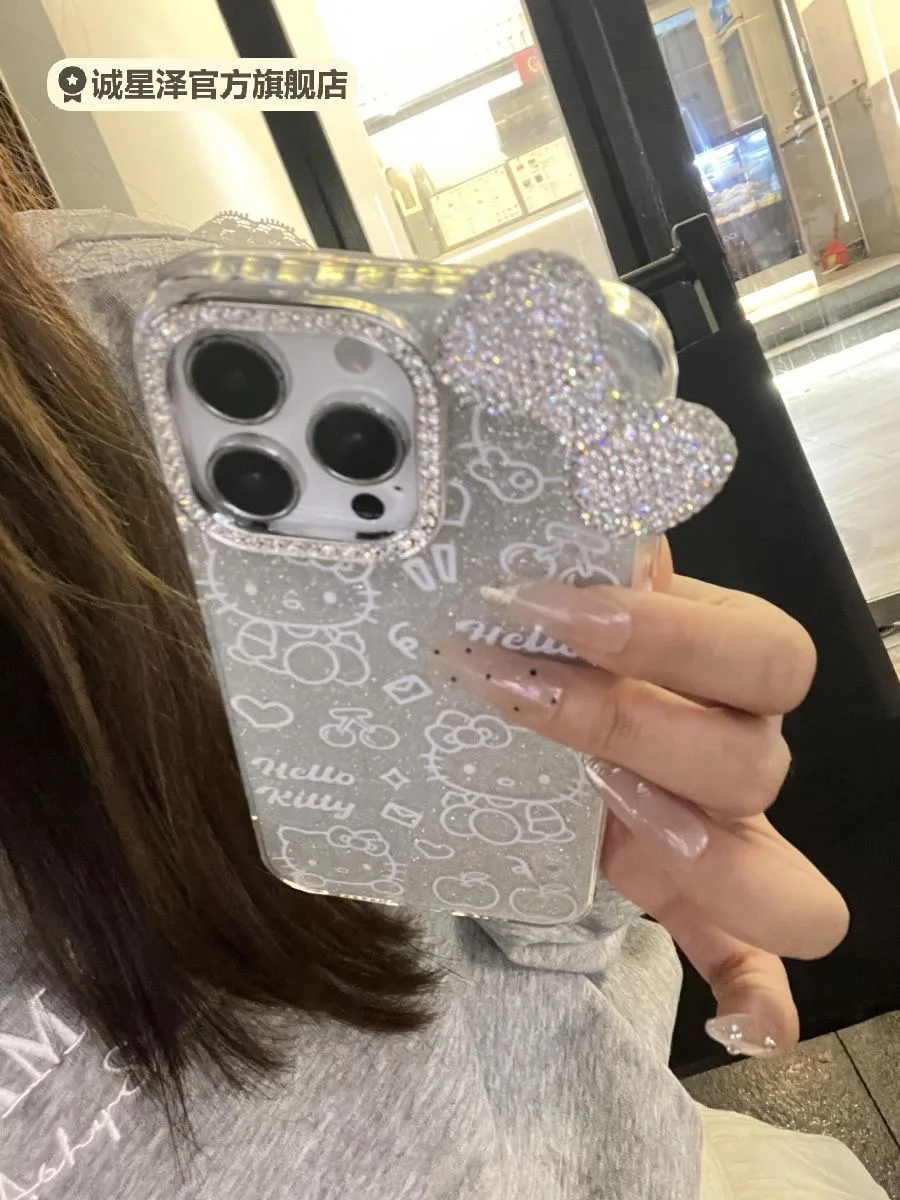 Luxury 3D Flash Diamond Bow Glitter Phone Case For iPhone 15 13 14 12 16 Pro Max 11 Silver Blingbling Shockproof Back Cover