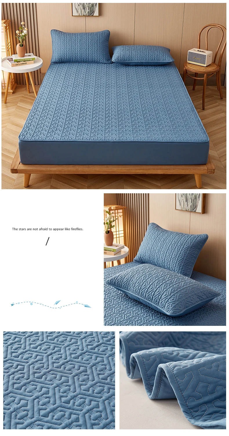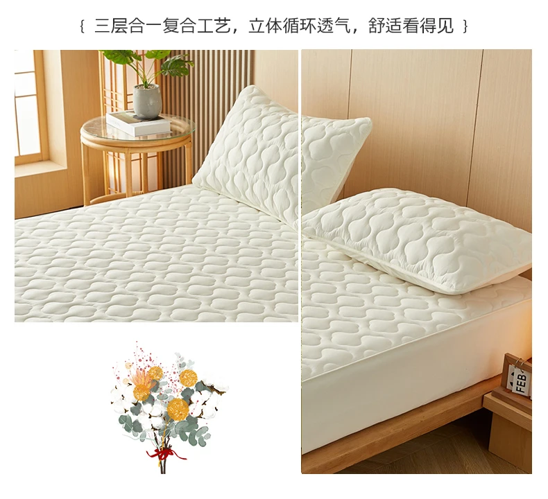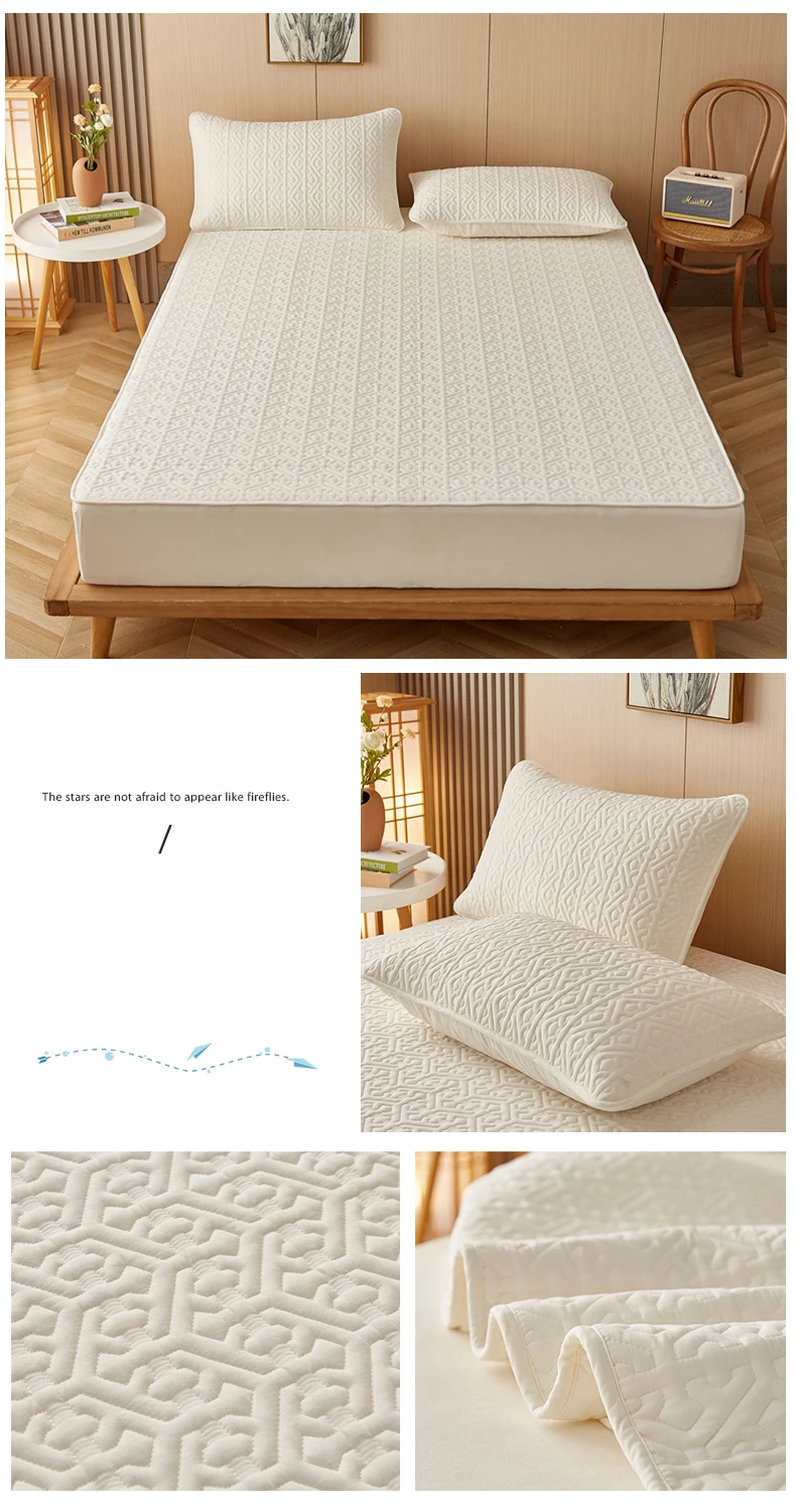 Luxury Cotton Fitted Mattress Pad Cover Fluffy Mattress Protector Ultrasonic Bed Topper Quilted Breathable Washable Bed Sheet