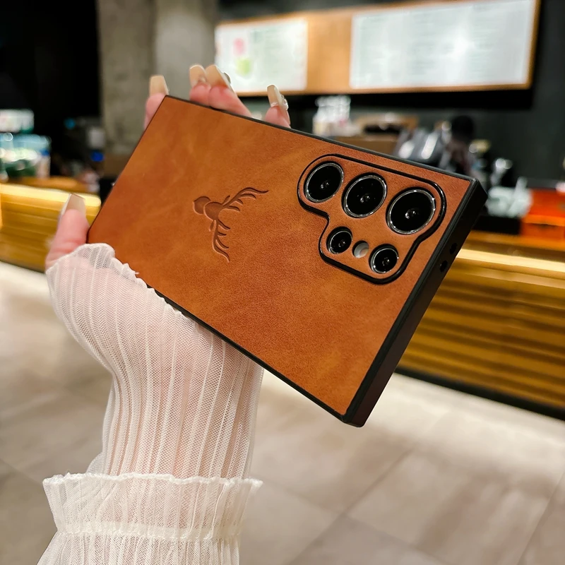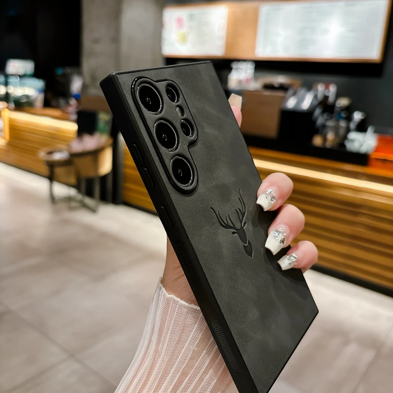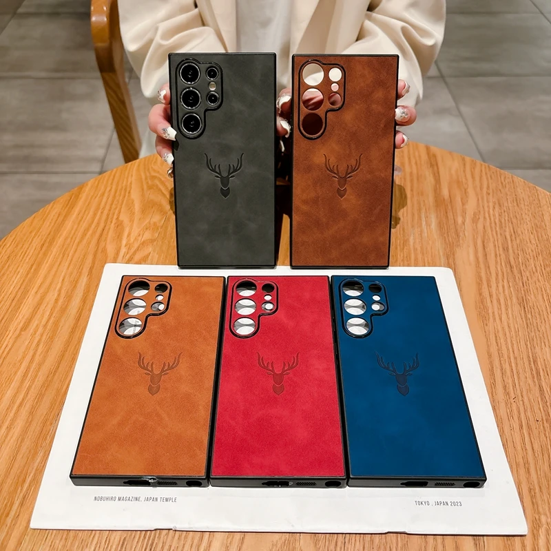 Luxury Deer Cortex Phone Case For Samsung Note 20 S21 S22 S23 S24 Ultra Plus FE Shockproof Bumper Cases Cover