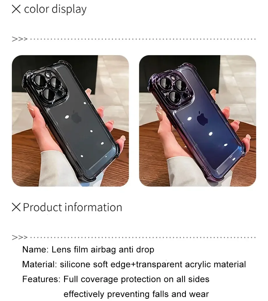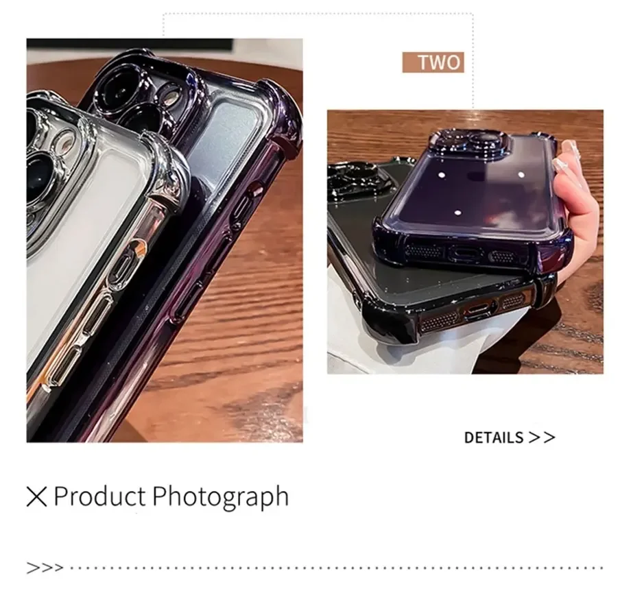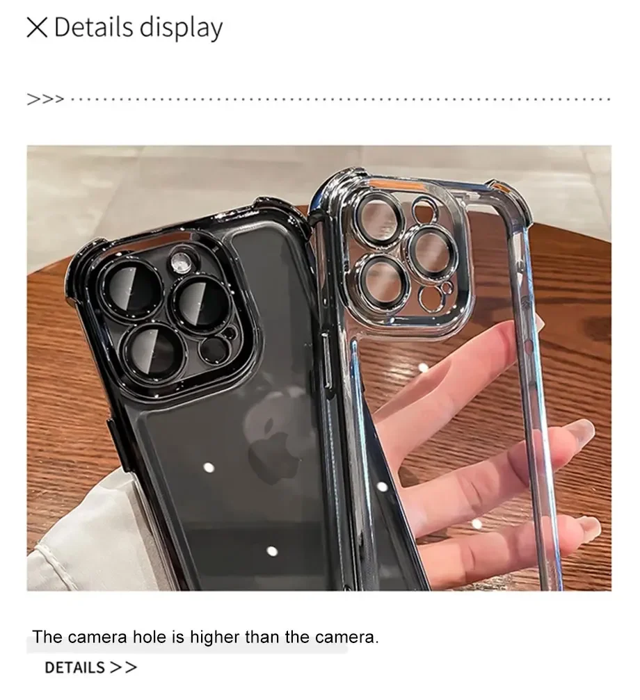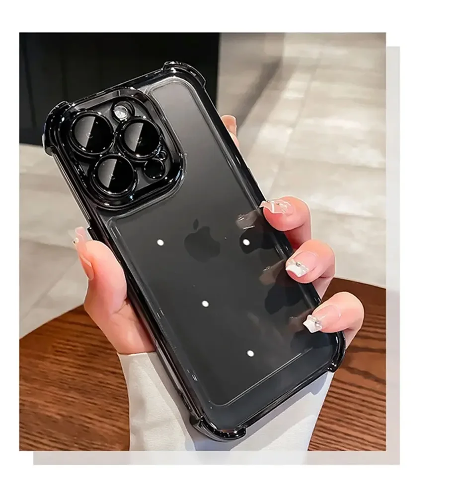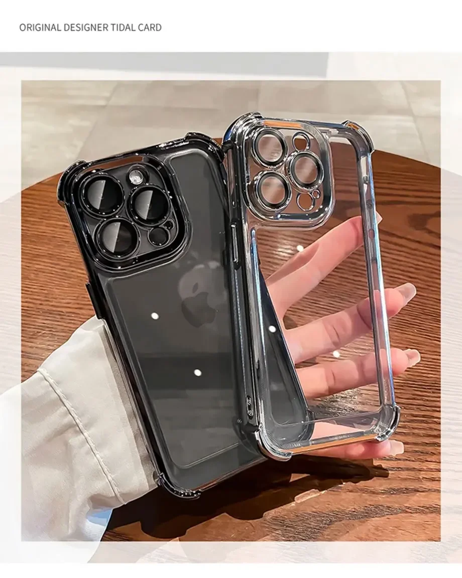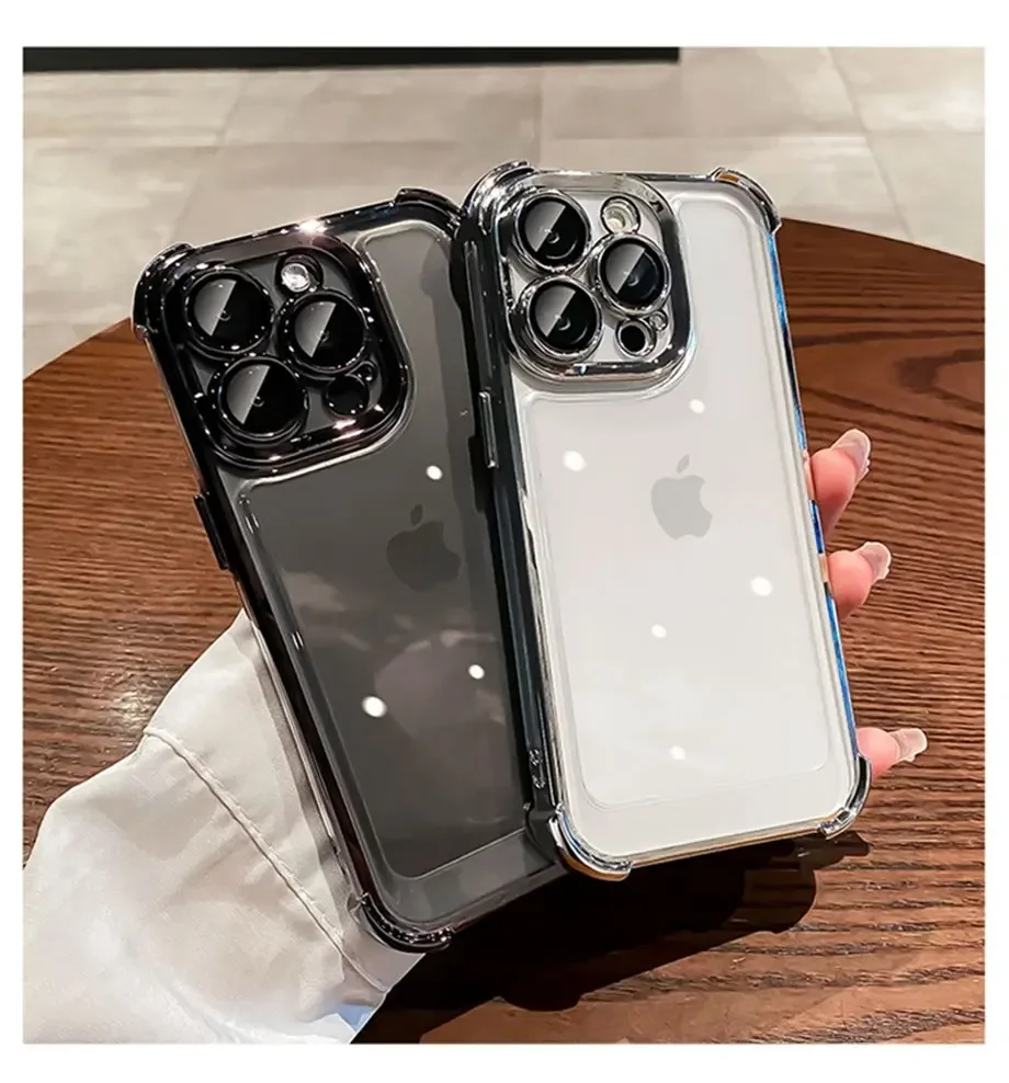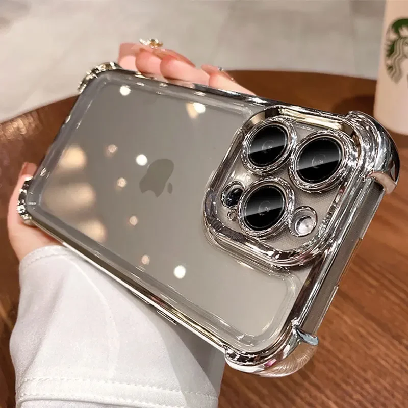 Luxury Electroplate Shockproof Transparent Phone Case For iPhone 16 15 14 13 12 11 Pro Max Plus With Lens Protector Bumper Cover