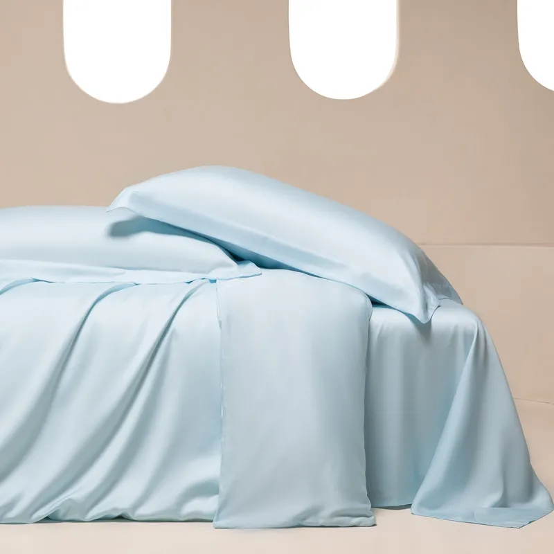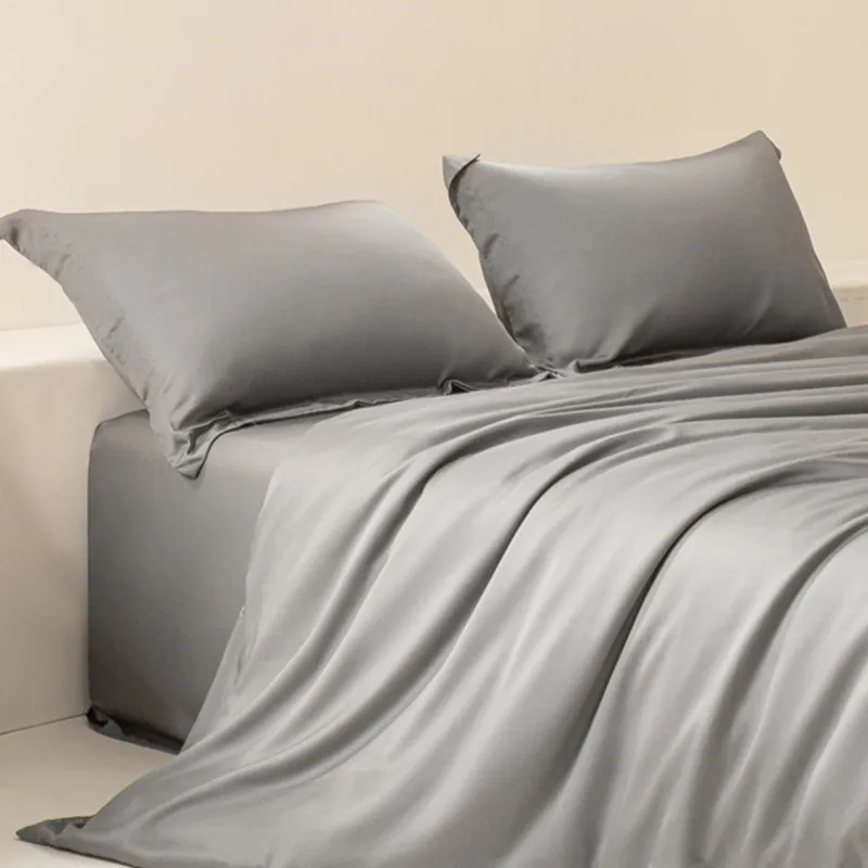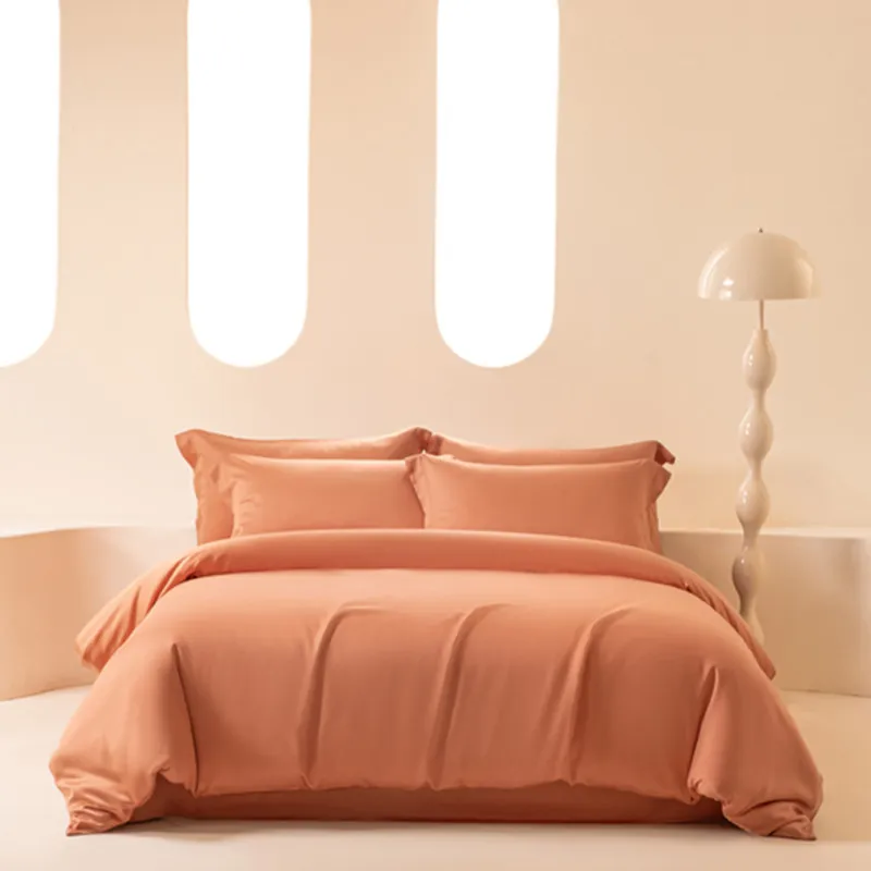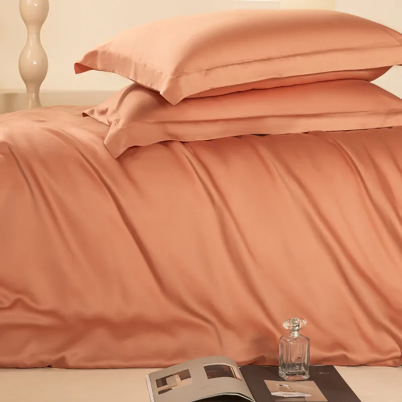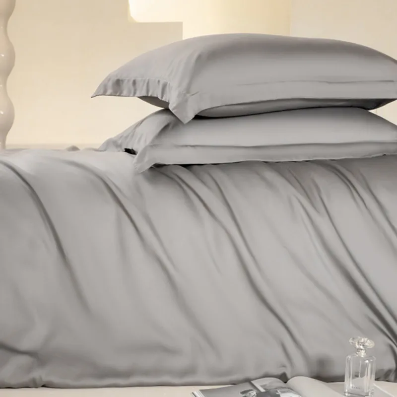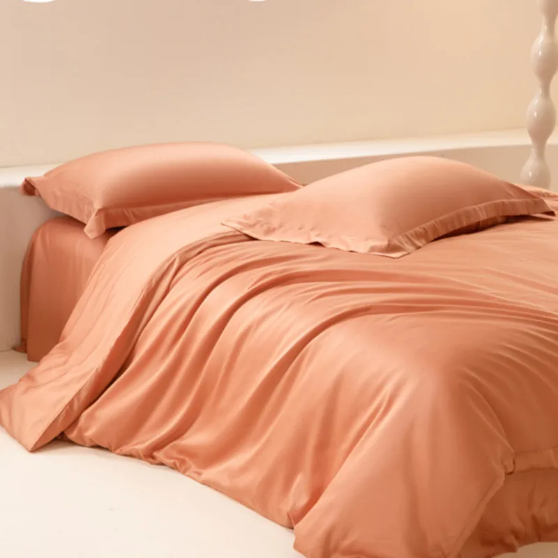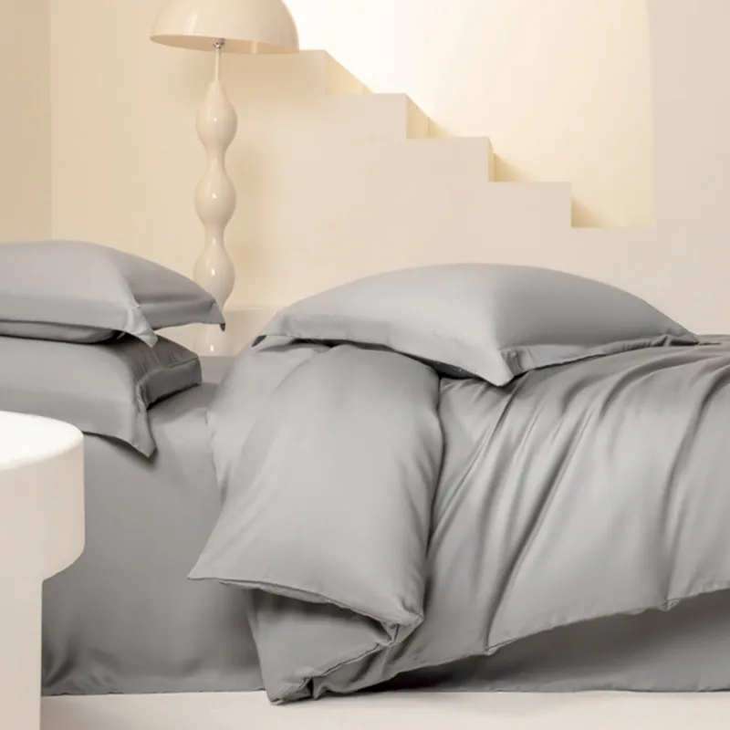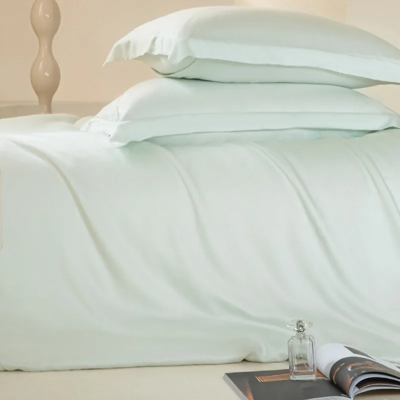 Luxury Eucalyptus Lyocell Full Size Duvet cover Set Solid Color 4Pcs Super Soft Silky Cooling Flat Bed Sheets 2 Pillowcases
