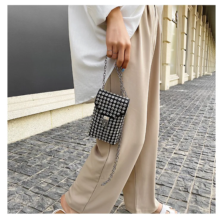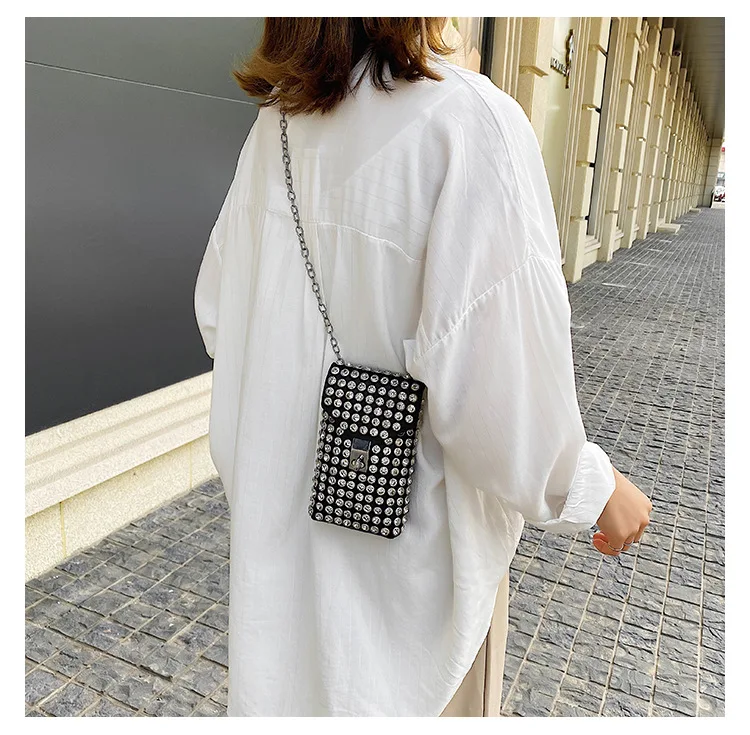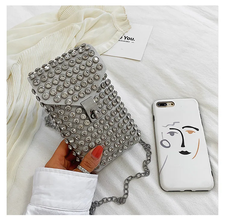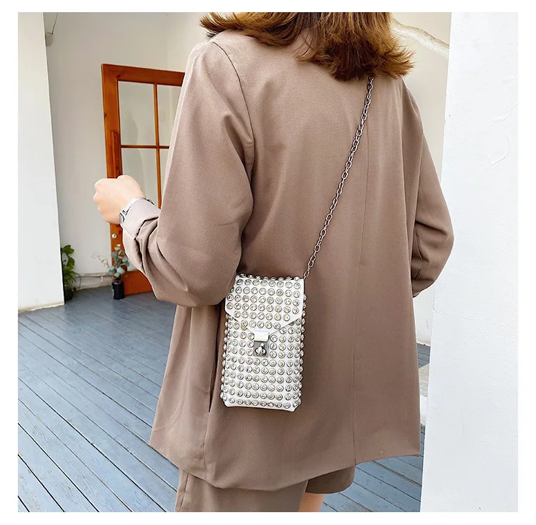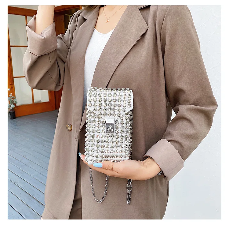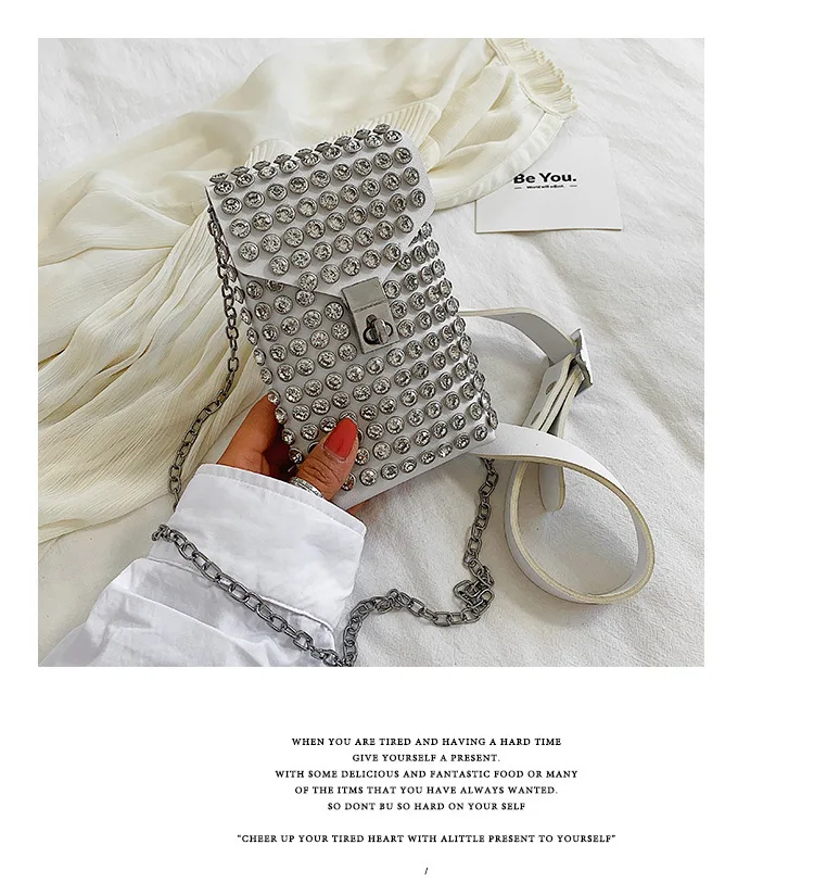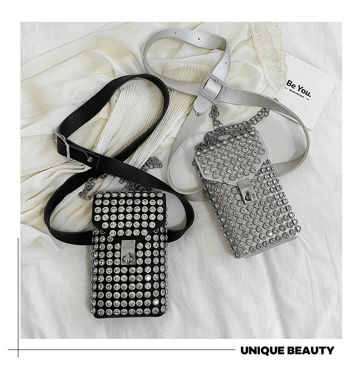 Luxury Full Rhinestone Women Phone Waist Bags Detachable PU Leather Waist Belt Shoe chain Crossbody Shoulder Bag Pack