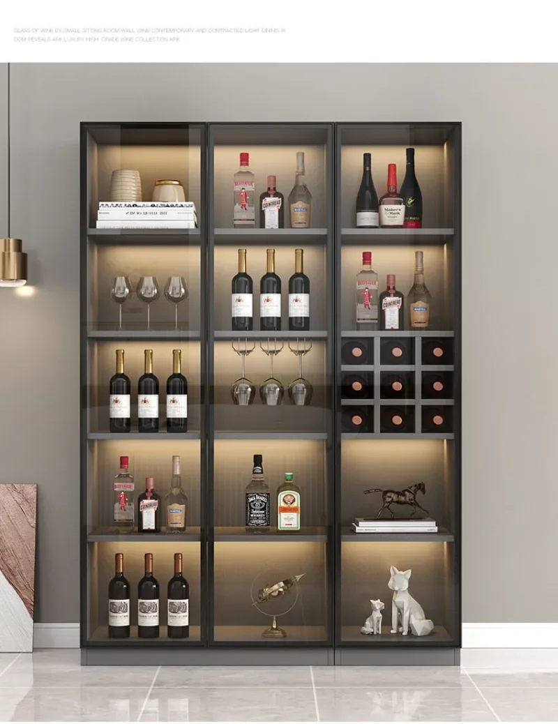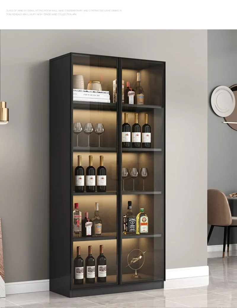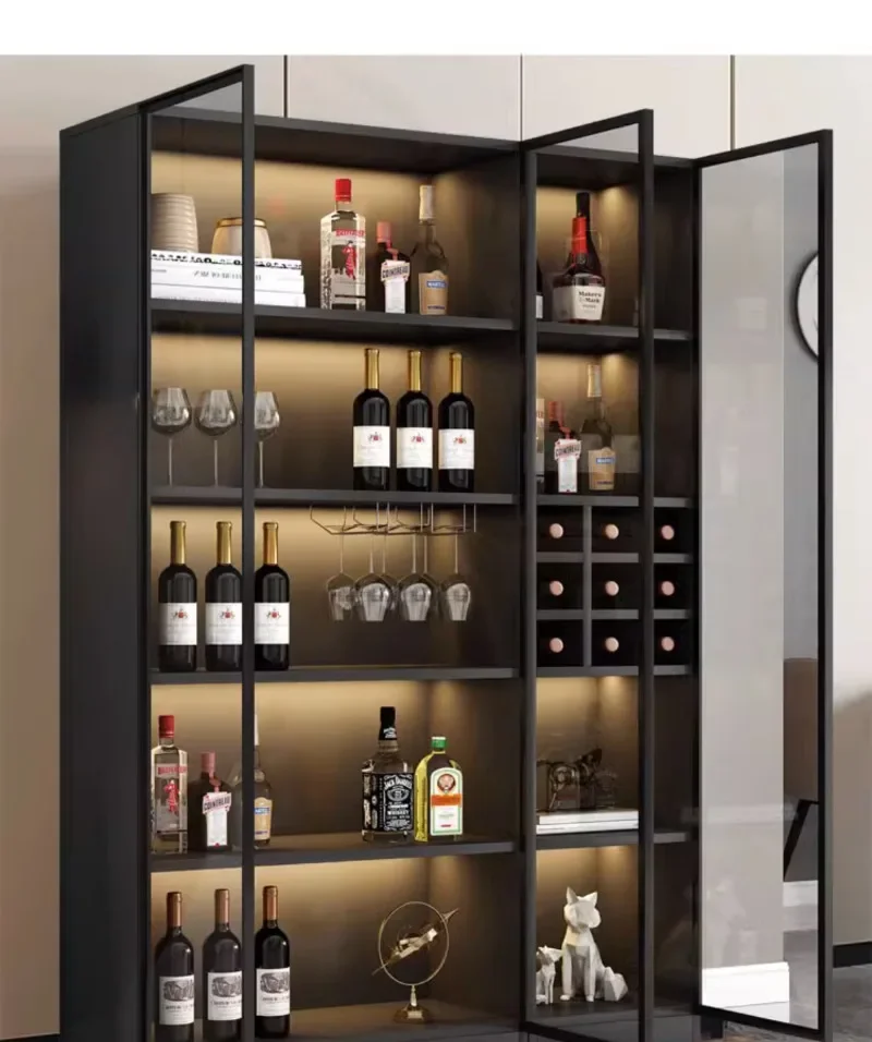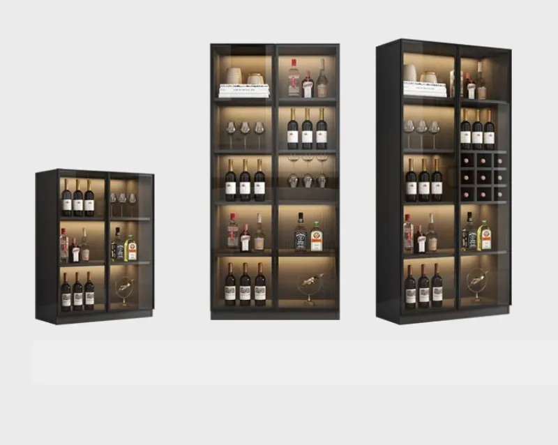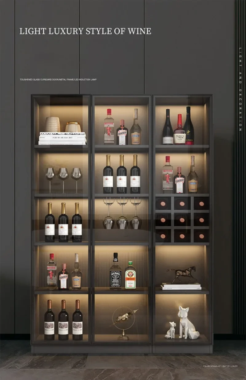 Luxury Glass Display Cabinet Bar Wine Cabinets for Living Room Wine Rack with Light Modern High-end Household Storage Showcase