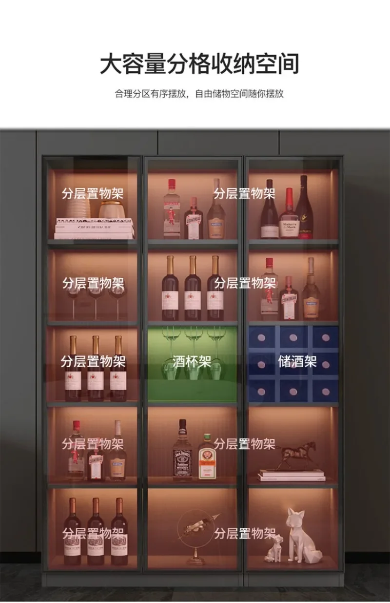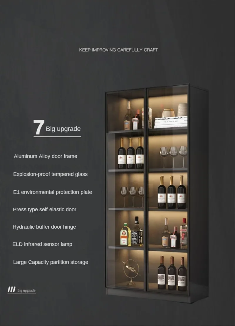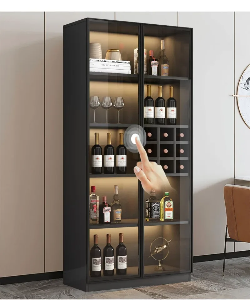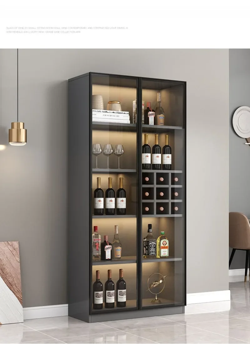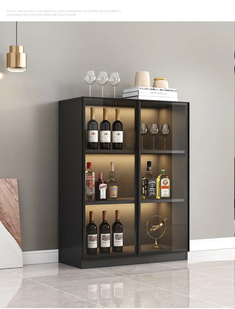 Luxury Glass Display Cabinet Bar Wine Cabinets for Living Room Wine Rack with Light Modern High-end Household Storage Showcase