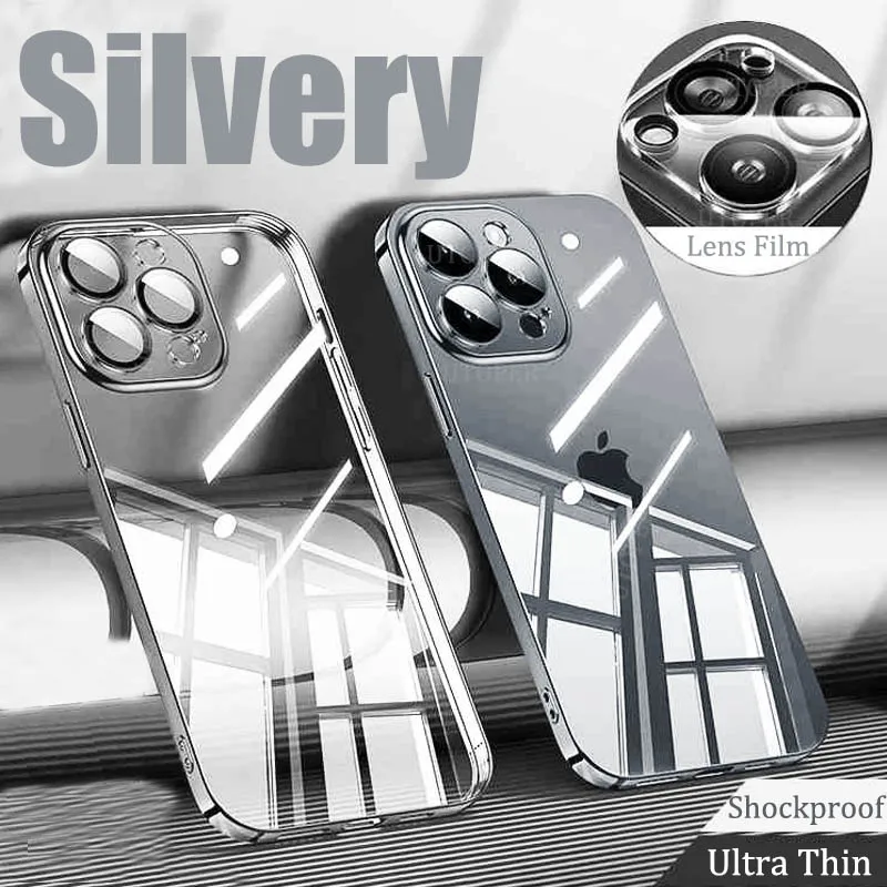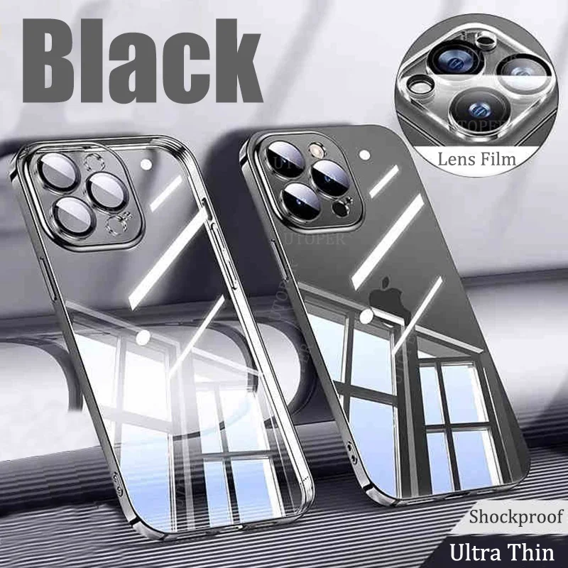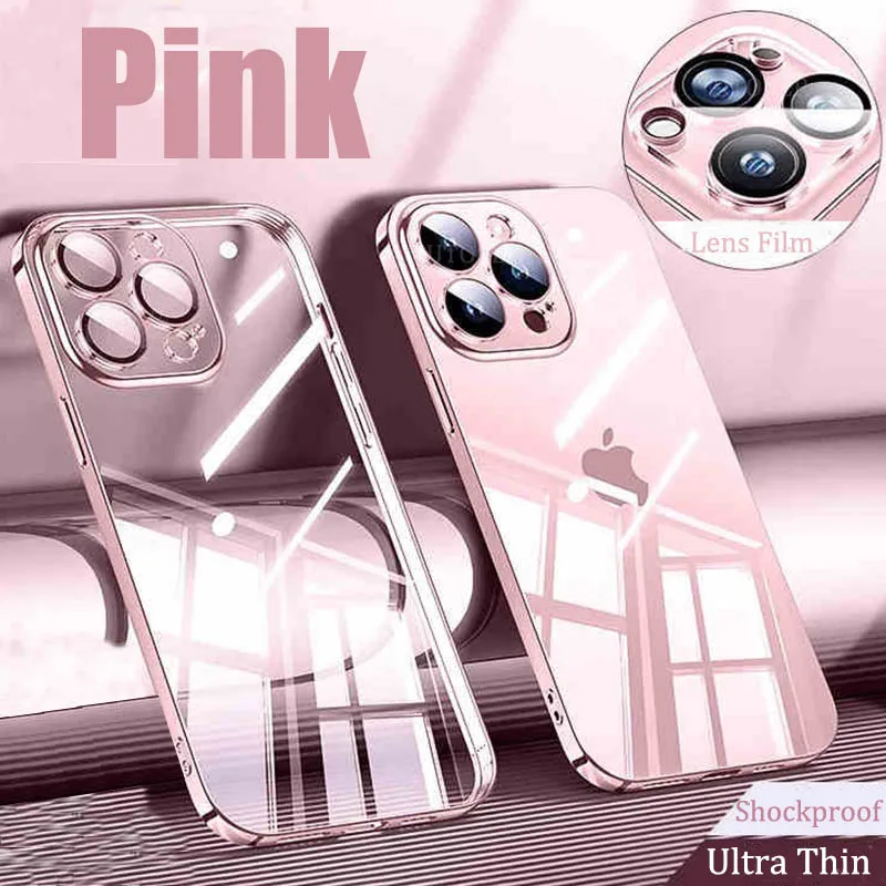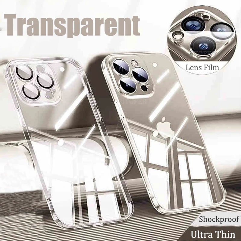 Luxury Plating Lens Film Protection TPU Phone Case For IPhone 16 15 14 13 12 11 Pro Max Plus Transparent Back Shockproof Cover