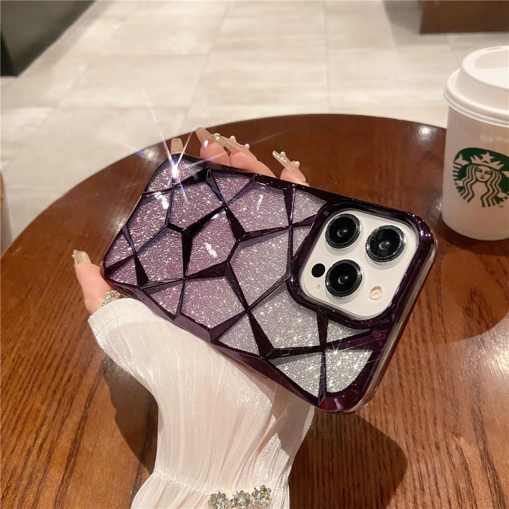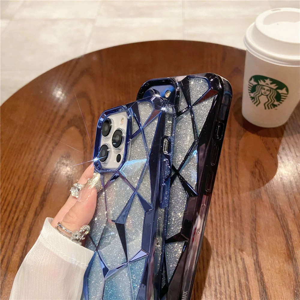 Luxury Plating Transparent Diamond Flash Glitter Phone Case For iPhone 11 12 13 14 16 Pro Max Soft Bumper Protector On 15 Cover