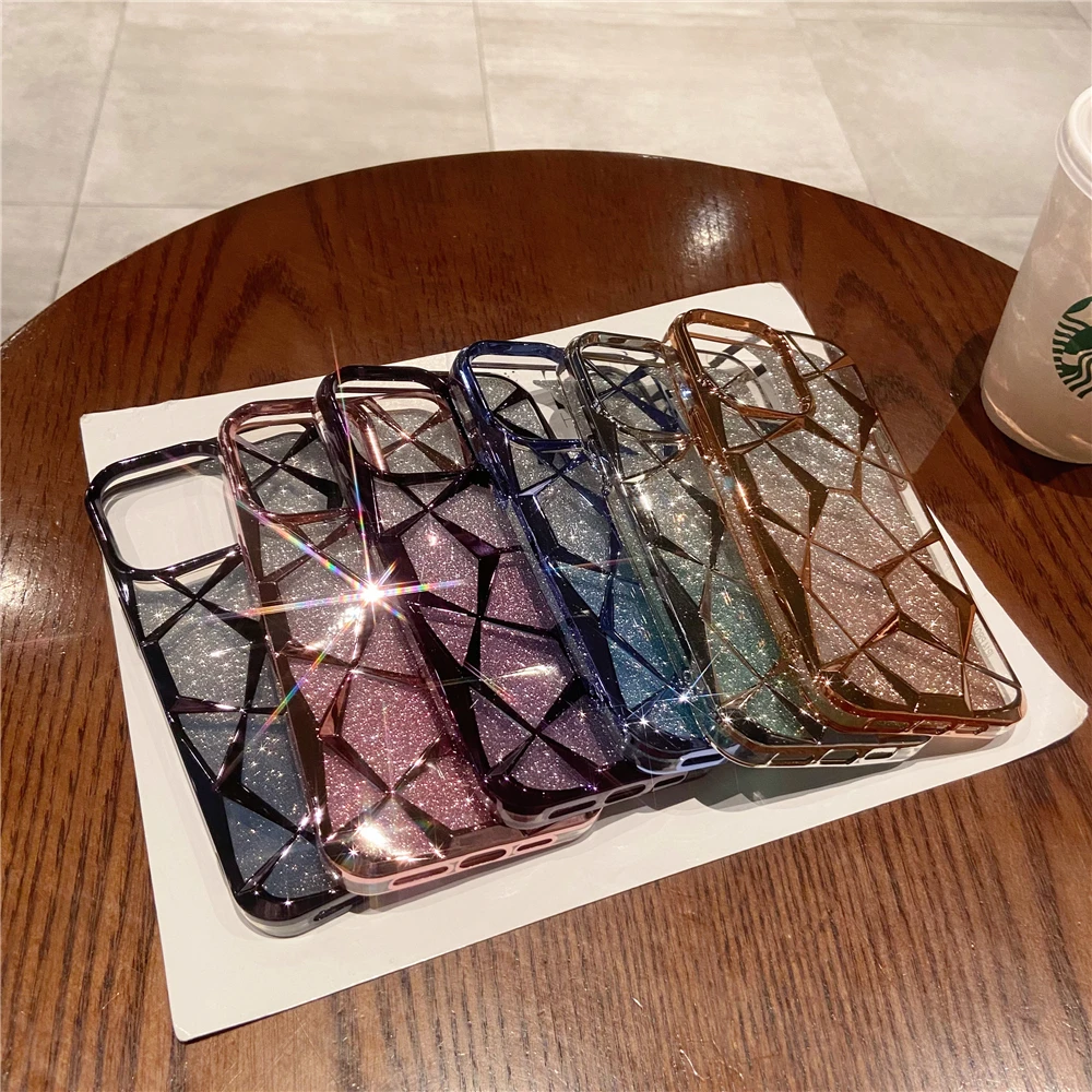 Luxury Plating Transparent Diamond Flash Glitter Phone Case For iPhone 11 12 13 14 15 Pro Max Soft Bumper Protector On 15 Cover