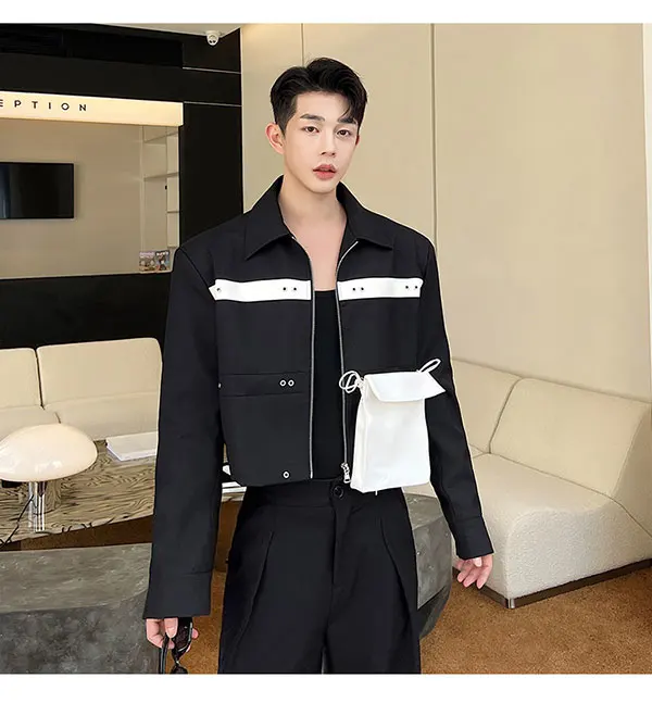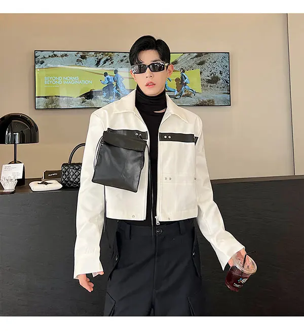 LUZHEN Rivet Metal Decorate Splicing Design Detachable Big Pockets Short Jackets Personality Trendy Men Street Outerwear LZ2215