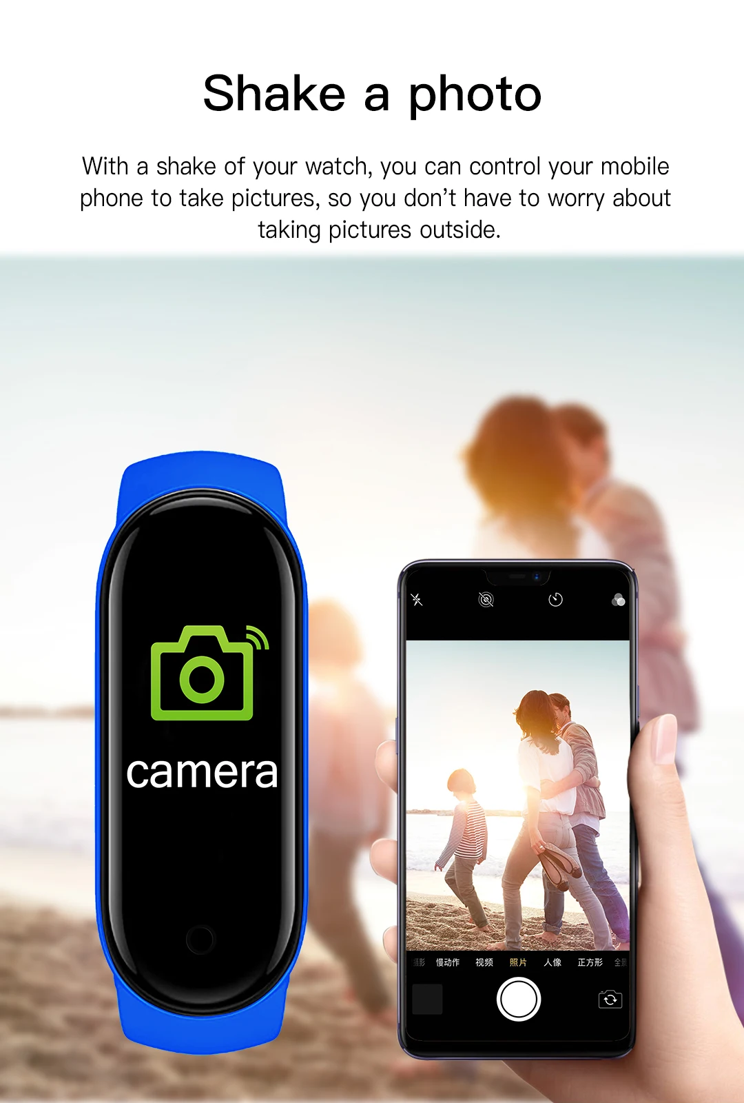 With a shake of your watch, you can control your mobile phone to take pictures, so you don't have to worry about taking pictures outside.