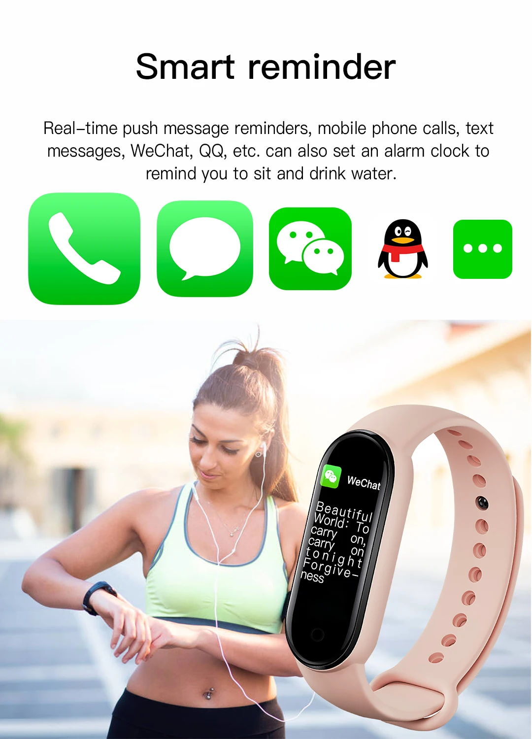 Real-time push message reminders, mobile phone calls, text messages, WeChat, QQ, etc. can also set an alarm clock to remind you to sit and drink water.