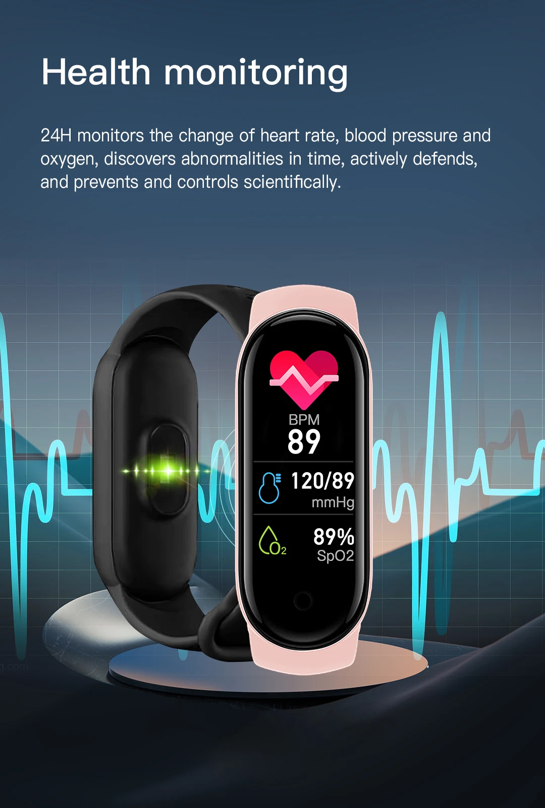 24H monitors the change of heart rate, blood pressure and oxygen, discovers abnormalities in time, actively defends, and prevents and controls scientifically.