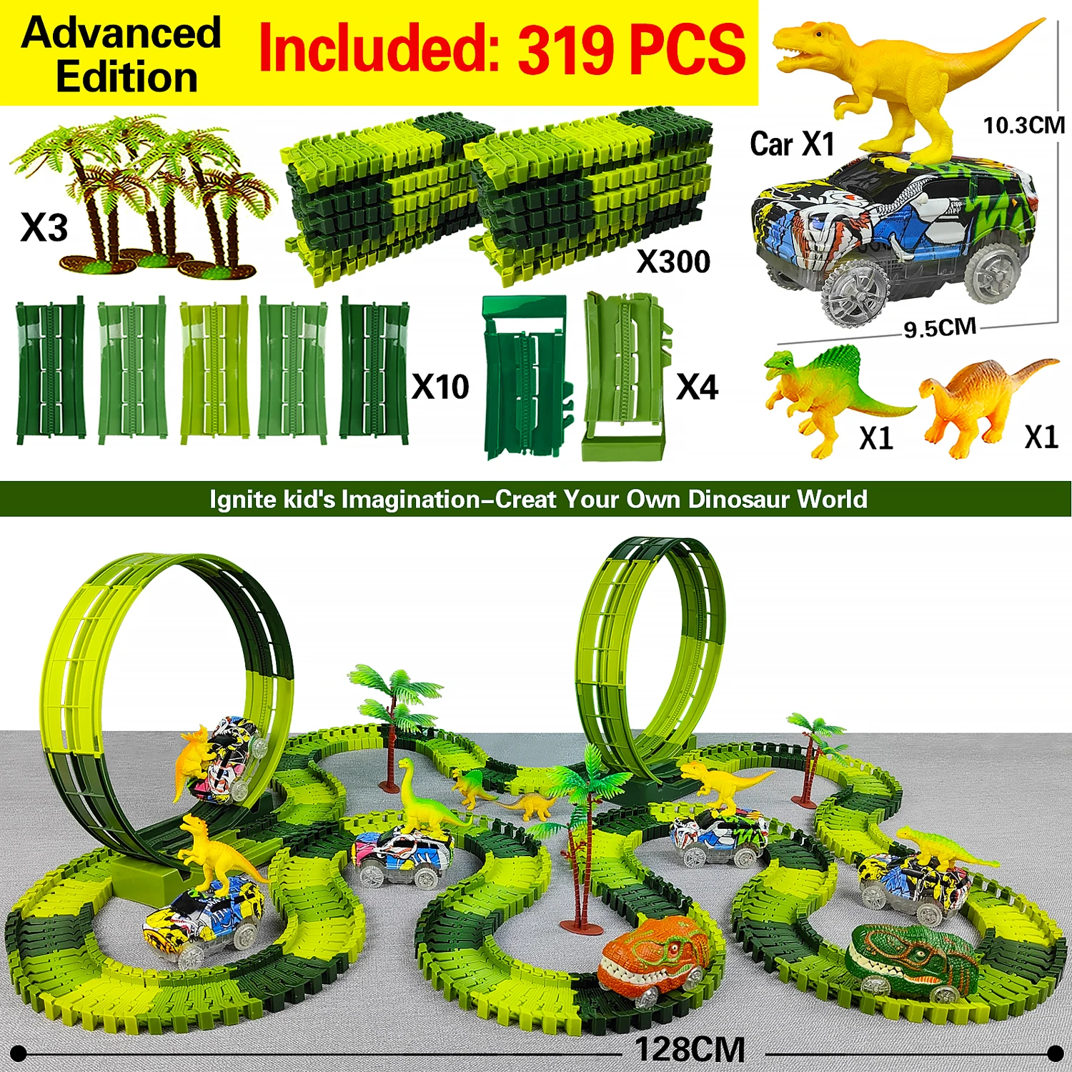 Magic Climbing Electric Dinosaur Car Track Railway Toy Car Set Bend Flexible Race Track Flash Light Car High Quality Toy For Kid
