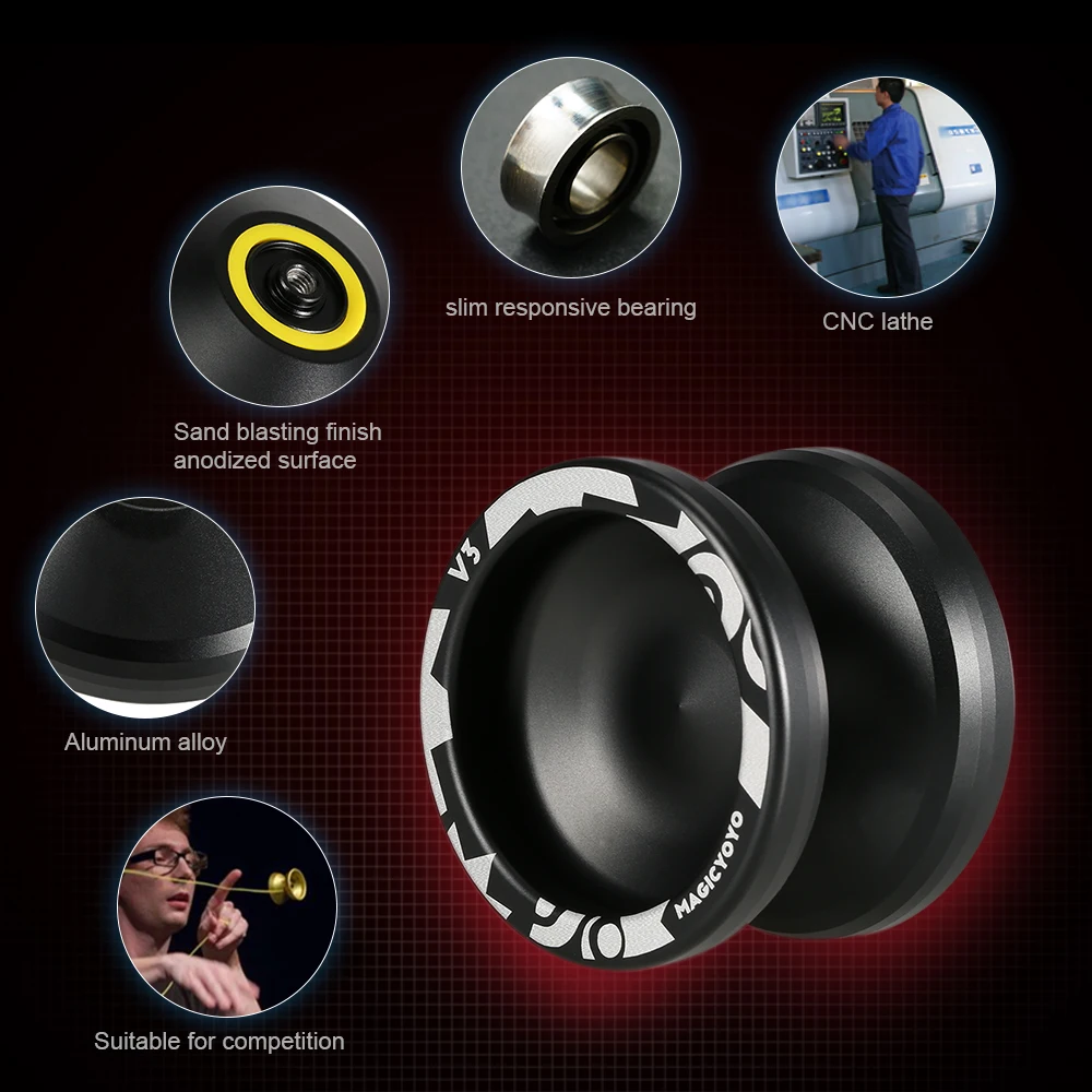 Magic Yoyo V3 Responsive High-speed Aluminum Alloy Yo-yo CNC Lathe with Spinning String for Boys Girls Children Kids Black