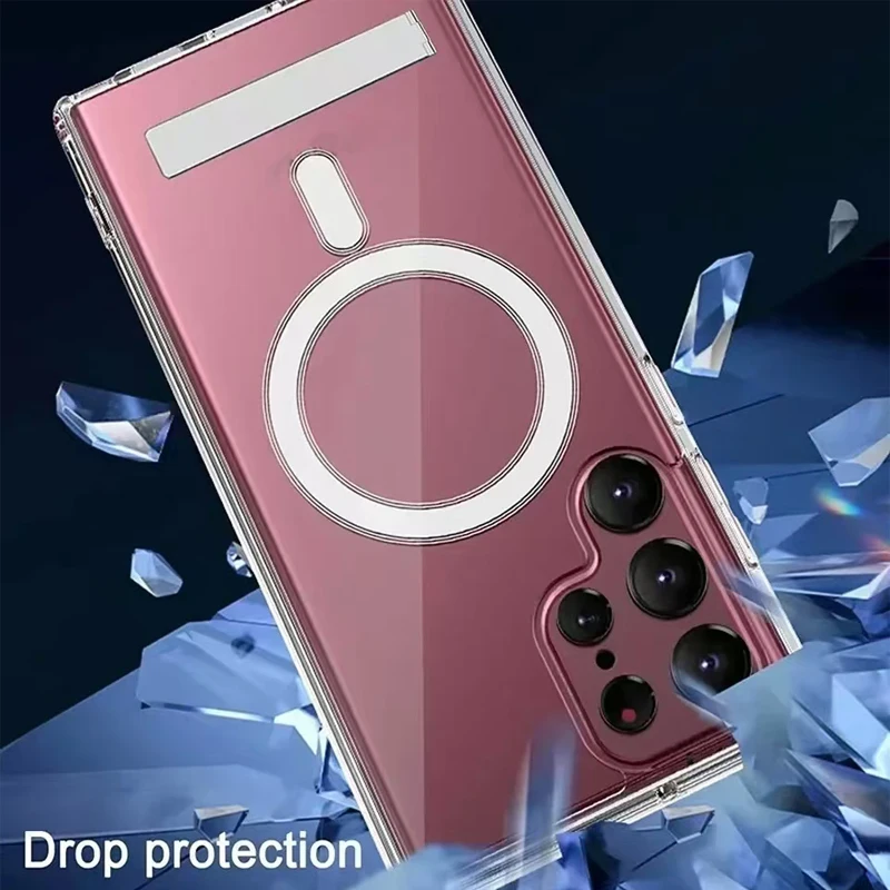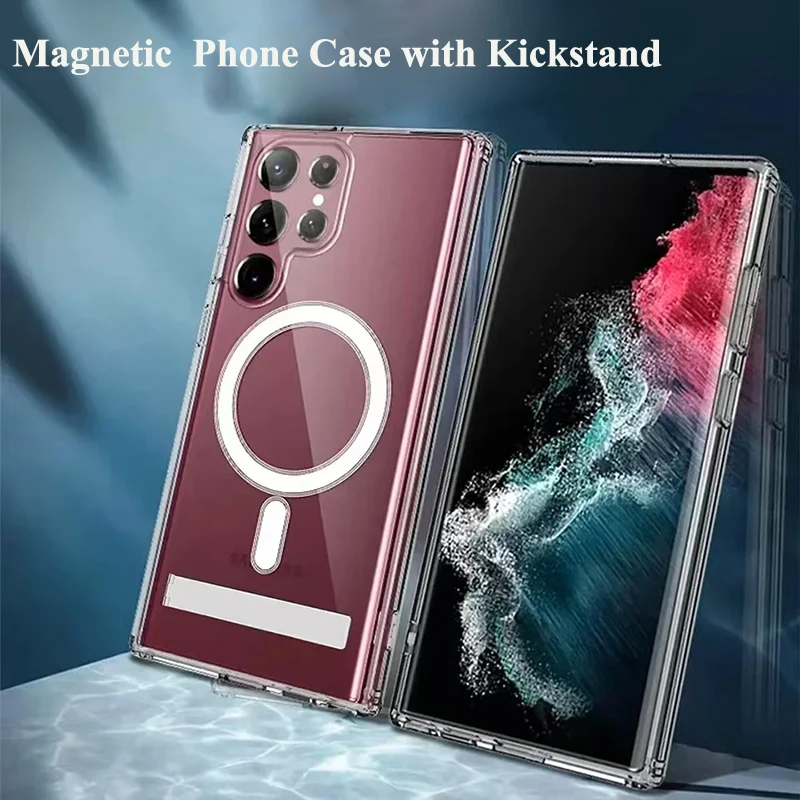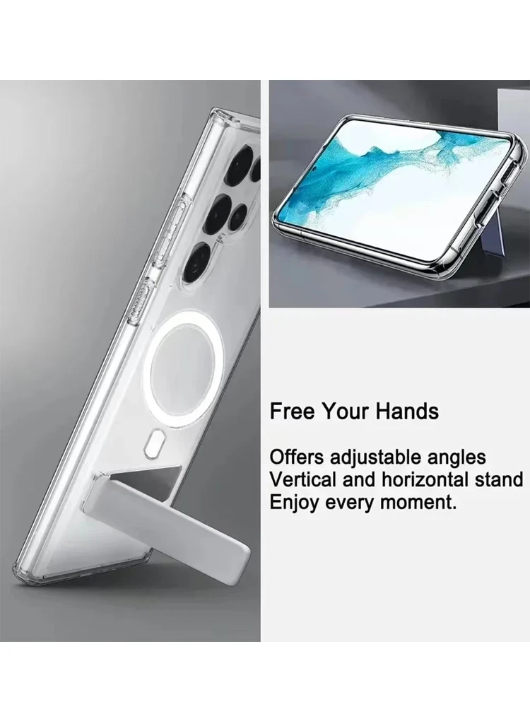 Magnetic Clear Shockproof Phone Case with Metal Kickstand Holder For Samsung Galaxy S24Ultra S24+ S24plus S23 S22 S22+ S22 Ultra