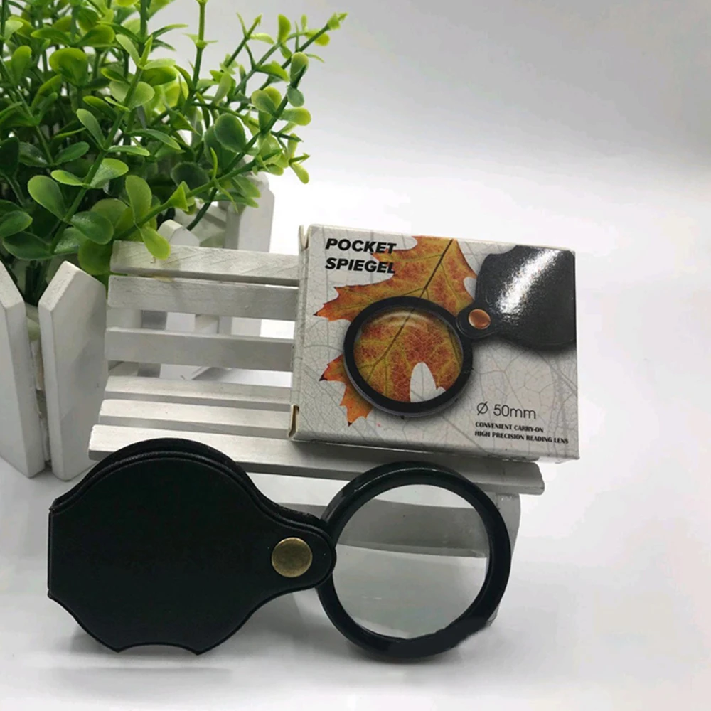 Magnifying Glass Folding Leather Case Magnifier Pocket Portable Loupe Magnifier Upgraded 10x Magnification Inspection Tools