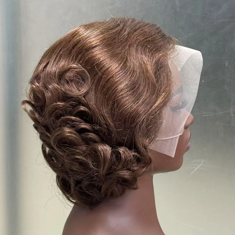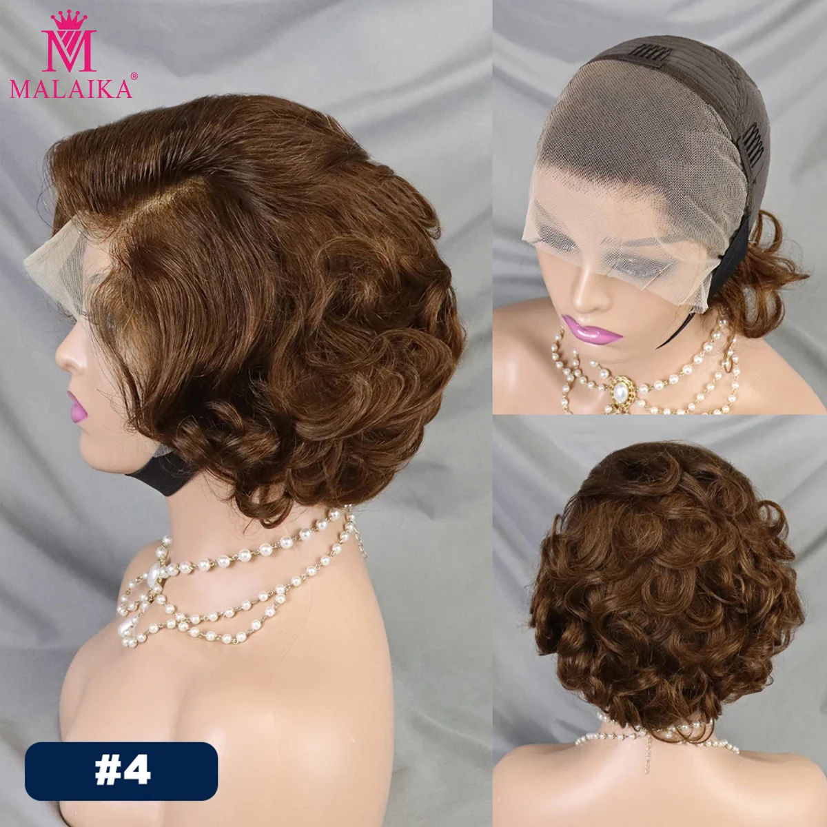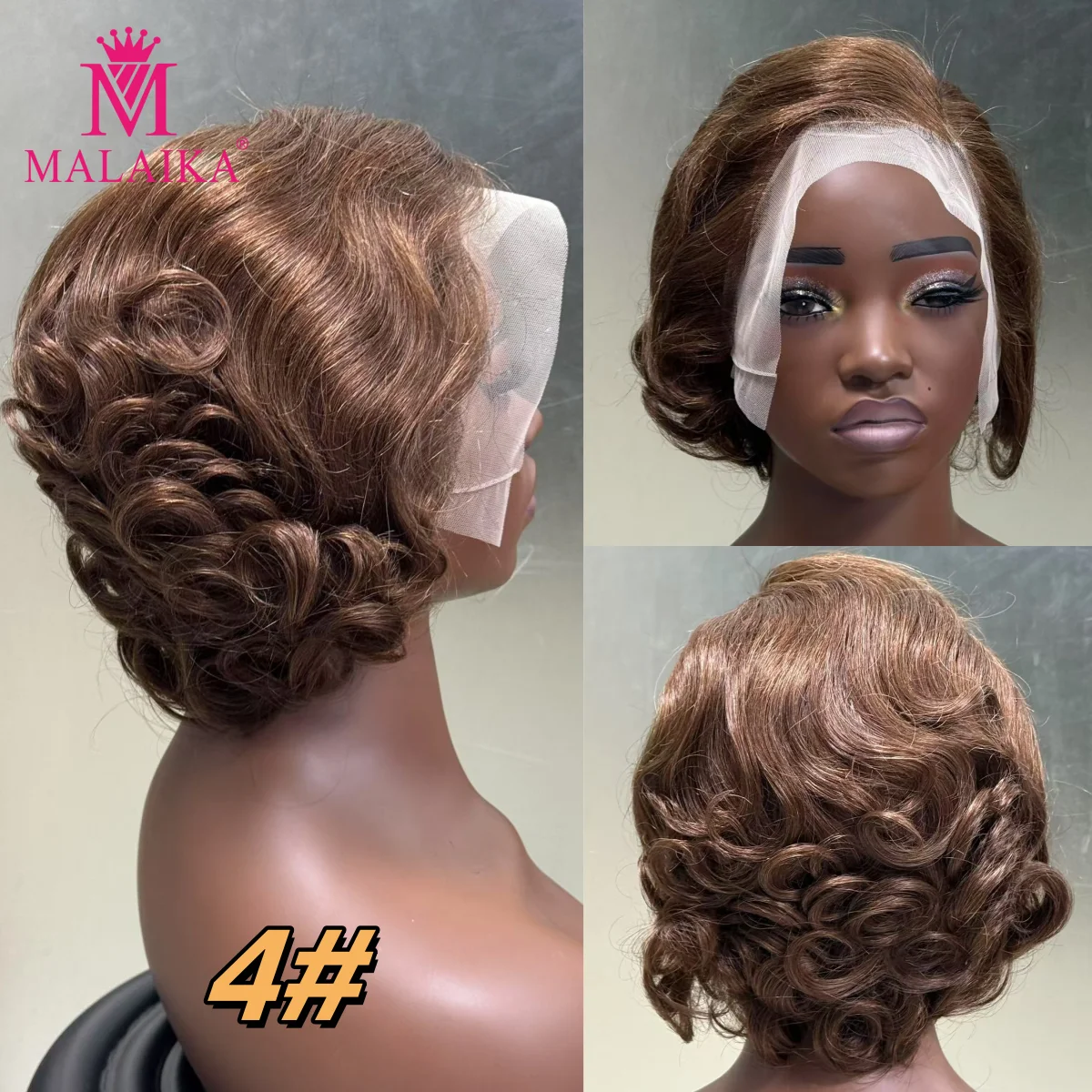 MALAIKA Loose Wave Bob Human Hair Pixie Cut Wig Brown 4# 13×4 Lace Frontal Transparent Human Hair Wig For Black Women