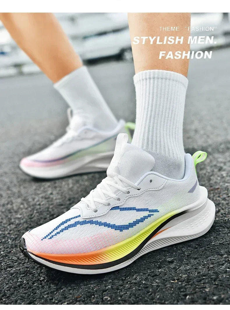 Marathon Air Cushion Carbon Plate Sports Running Shoes Men Breathable Lightweight Women’s Comfortable Athletic Nonskid Sneakers