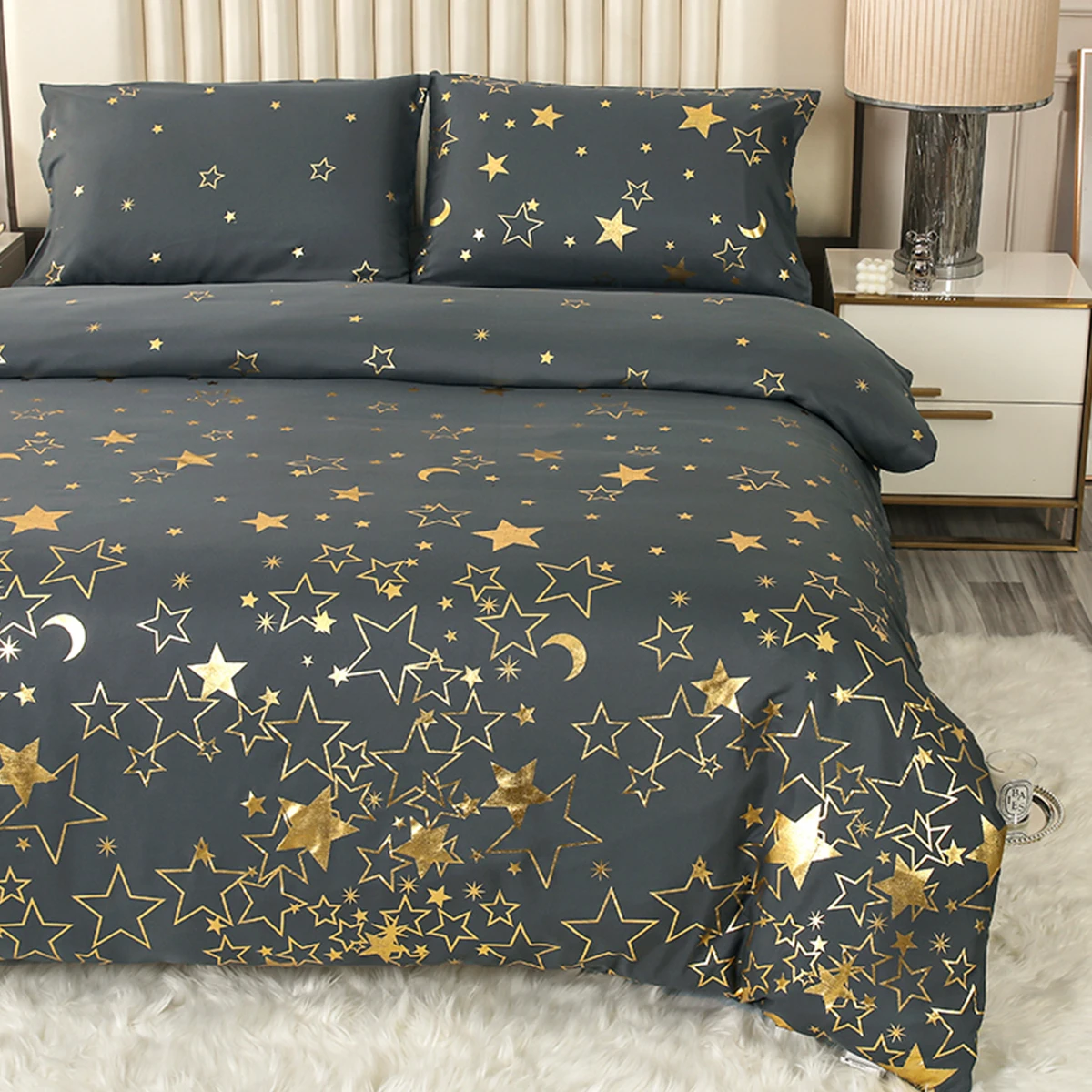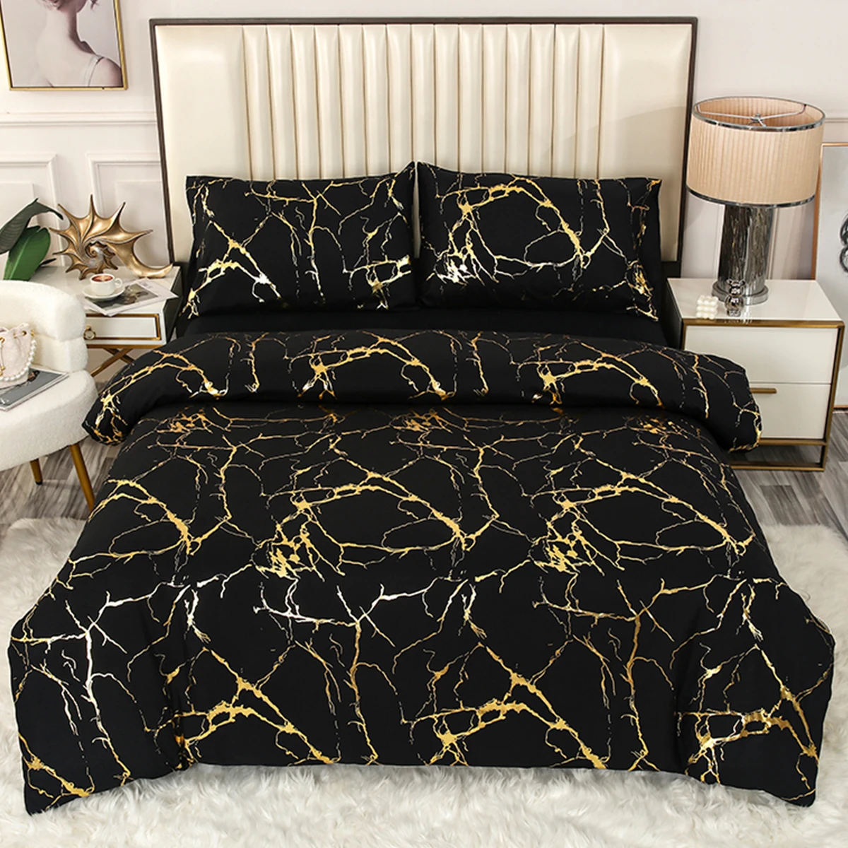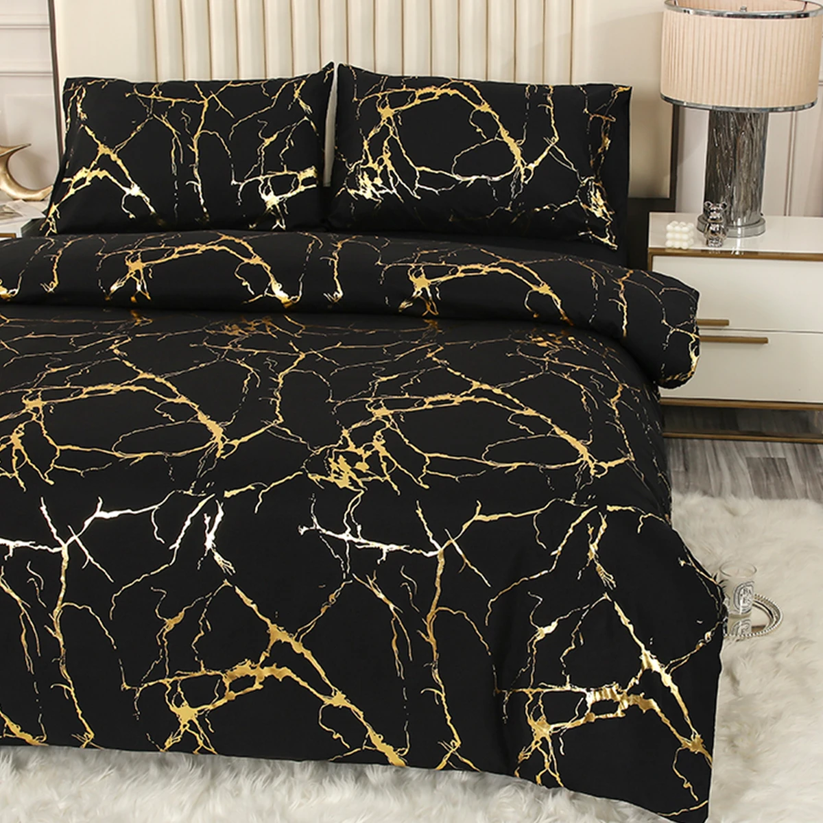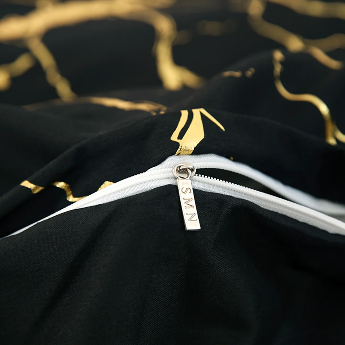 Marble Print Comforter Cover Sets Grey Black Sequin Gold Duvet Cover Set with Zipper Closure Abstract Queen Size Bedding Set