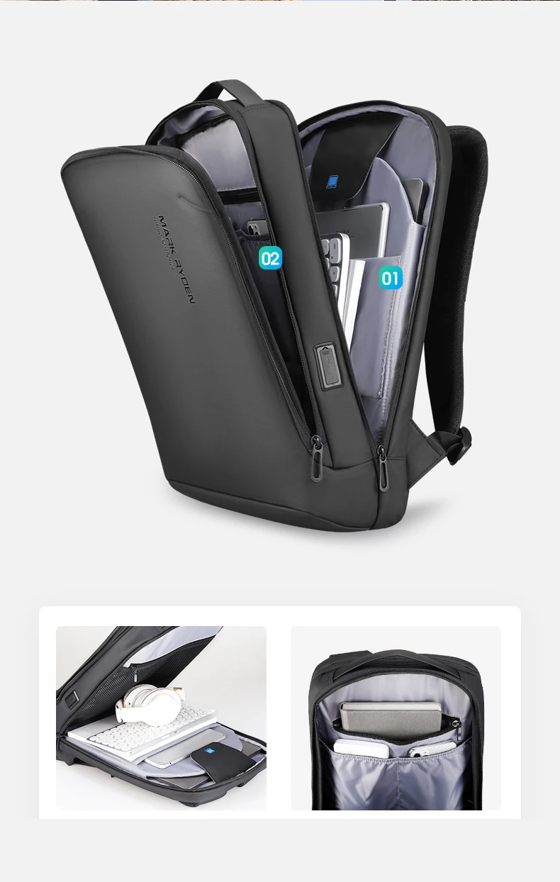 Mark ryden backpack 15.6 Inch Men Leisure Large Capacity Business USB Charging Port Backpack Waterproof Computer Bag