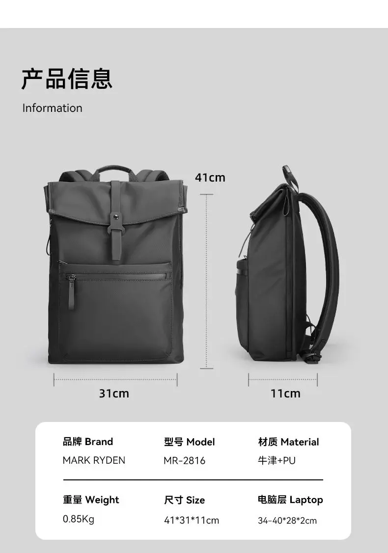 Mark Ryden Fashion Man Business Backpack Waterproof Book Bag Mochila Schoolbag for Teenage Travel 15.6 Inches Laptop Rucksack