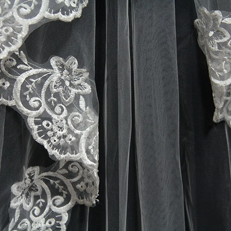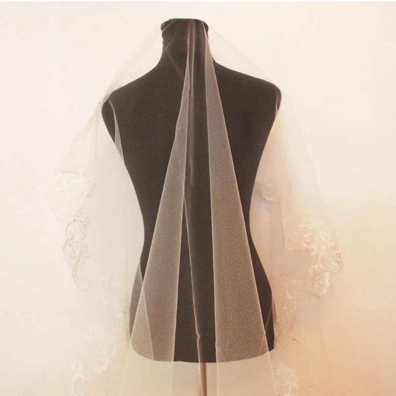 Marriage 3M One Layer Lace Edge Red White Ivory Catherdal Wedding Veil Long Bridal Cheap Accessories Veu de Noiva