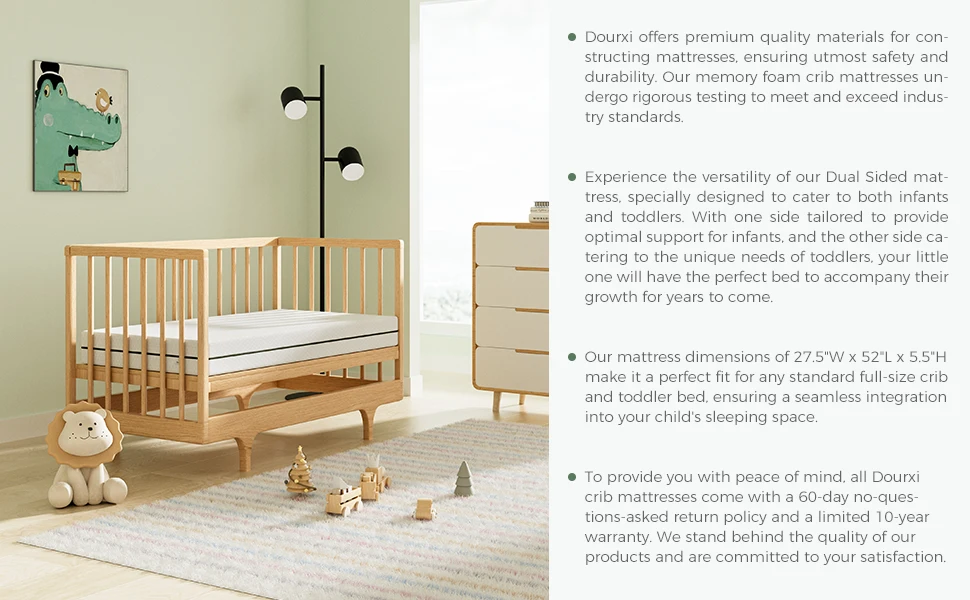 Foam Crib Mattress, Dual Side Toddler Mattress,Washable and Waterproof, fits Standard Full-Size Crib and Toddler Bed,Fiberglass-