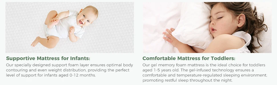 Mattress, Dual-Sided Comfort Baby and Toddler Mattress with Gel Memory Foam and Removable Cover, Fits Standard Size Cribs and To